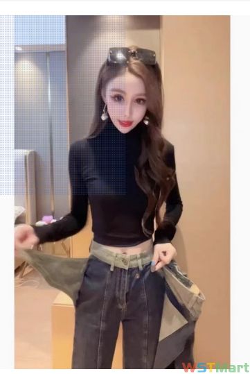 设计感拼接阔腿牛仔裤女2023春秋季大码腰宽松显瘦百搭直筒裤子