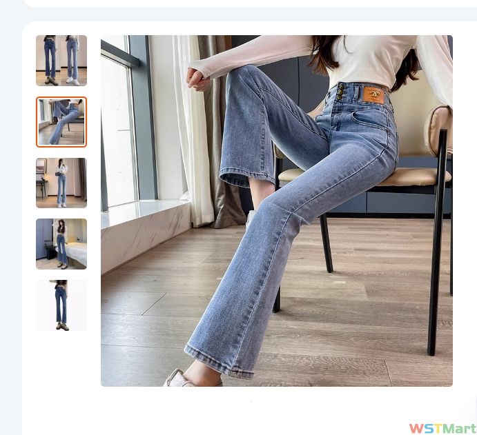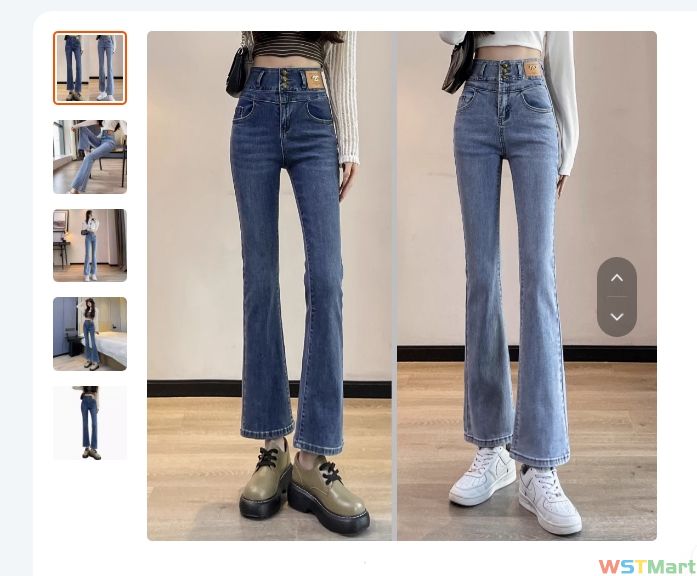 腰多扣牛仔裤女弹力九分裤新款修身显瘦微喇女装裤2023春夏爆款