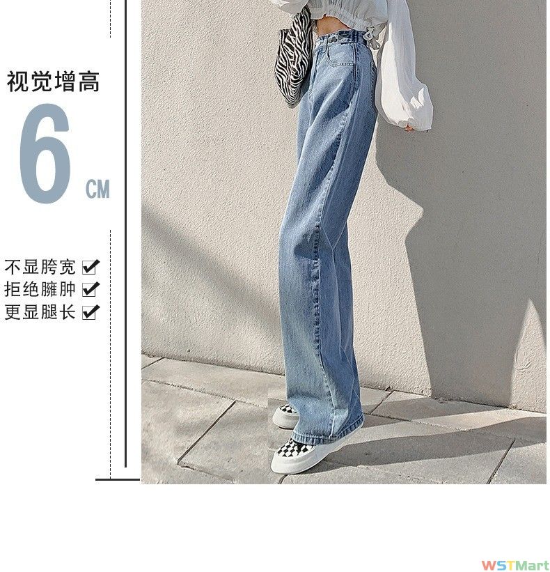 腰牛仔裤女直筒宽松2024新款夏季显瘦小个子垂感拖地阔腿长裤子