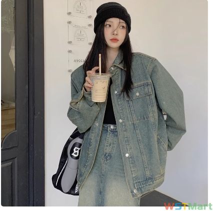 秋季新款韩版复古水洗牛仔外套女外穿垫肩长袖夹克衫外穿宽松上衣