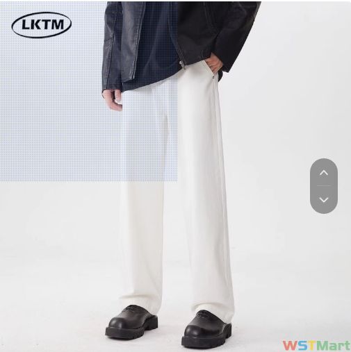 LKTM装#白色直筒水洗牛仔裤cityboy潮牌宽松垂感百搭休闲长裤