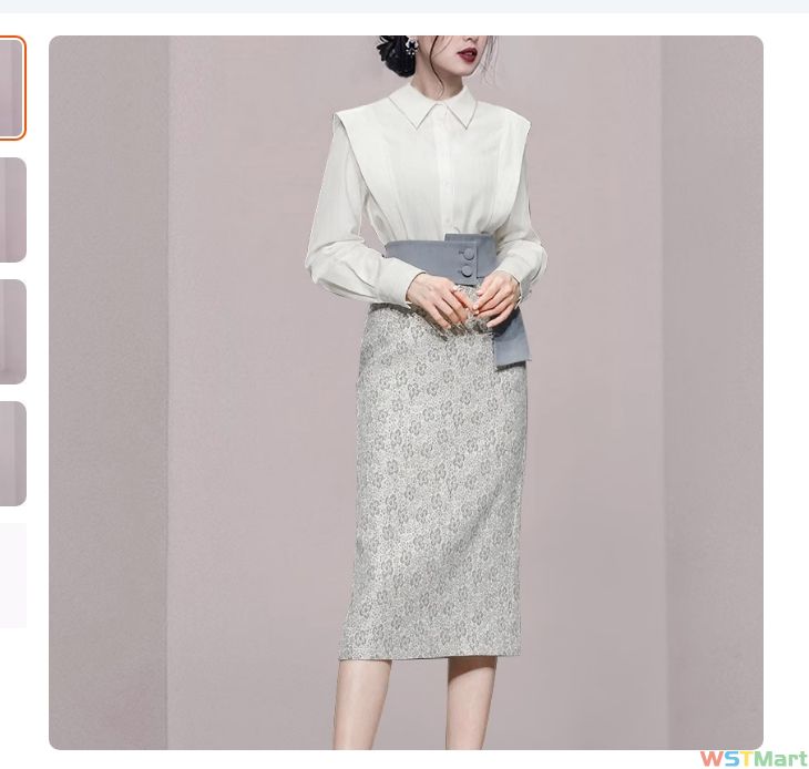 跨境女装2023新款名媛时尚气质两件套白色衬衫衬衣提花包臀连衣裙 ¥ 354 · 已售 0