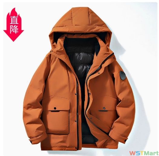 2023新款冬季大码装工装羽绒服加绒加厚保暖翻领连帽士羽绒服
