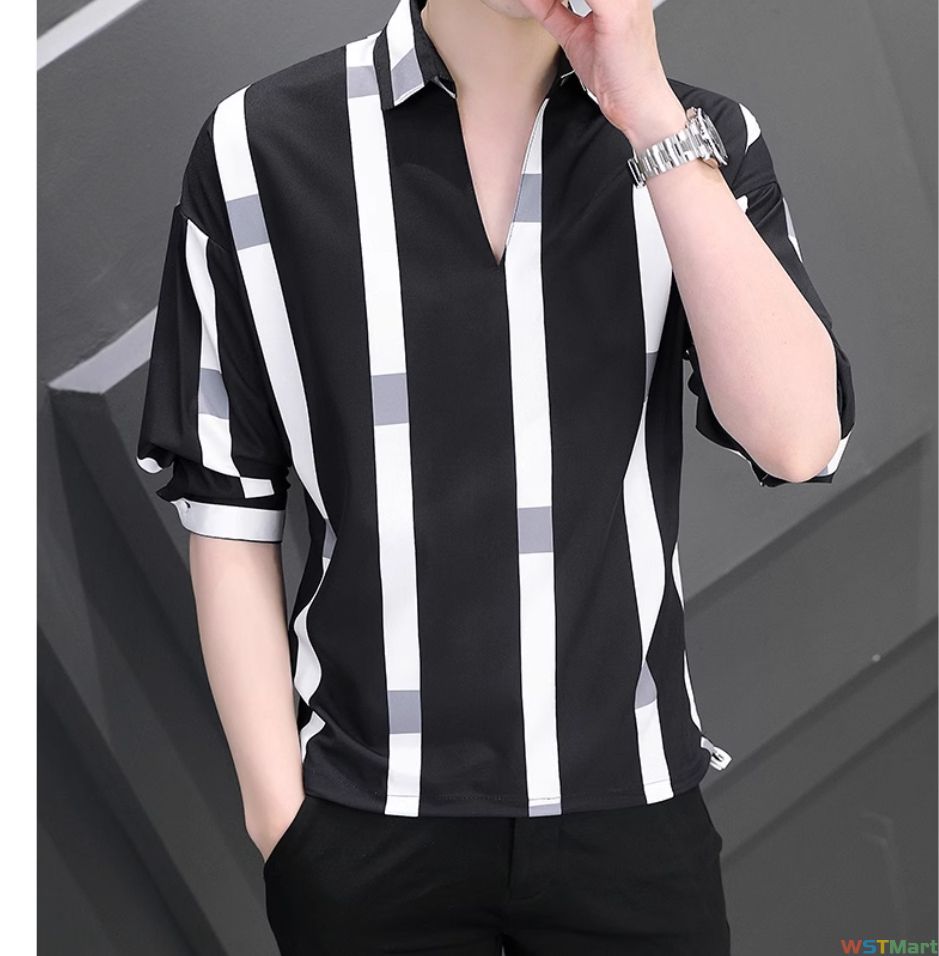 男士短袖t恤宽松七分袖夏季新款打底衫冰丝休闲半袖男装体恤衣服