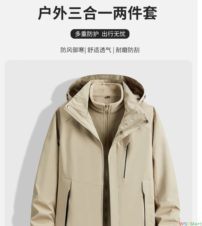 啄木鸟秋冬季可拆卸内胆冲锋衣外套男士加大码户外三合一防风夹克