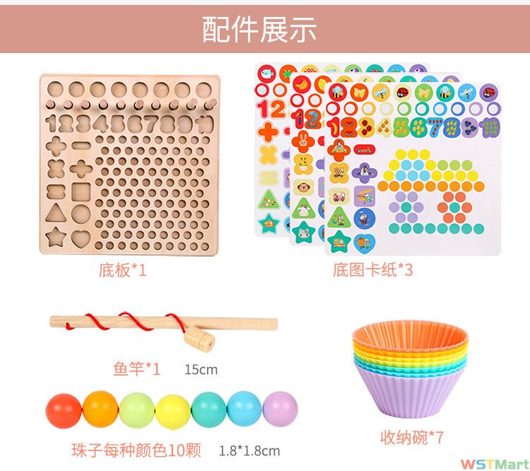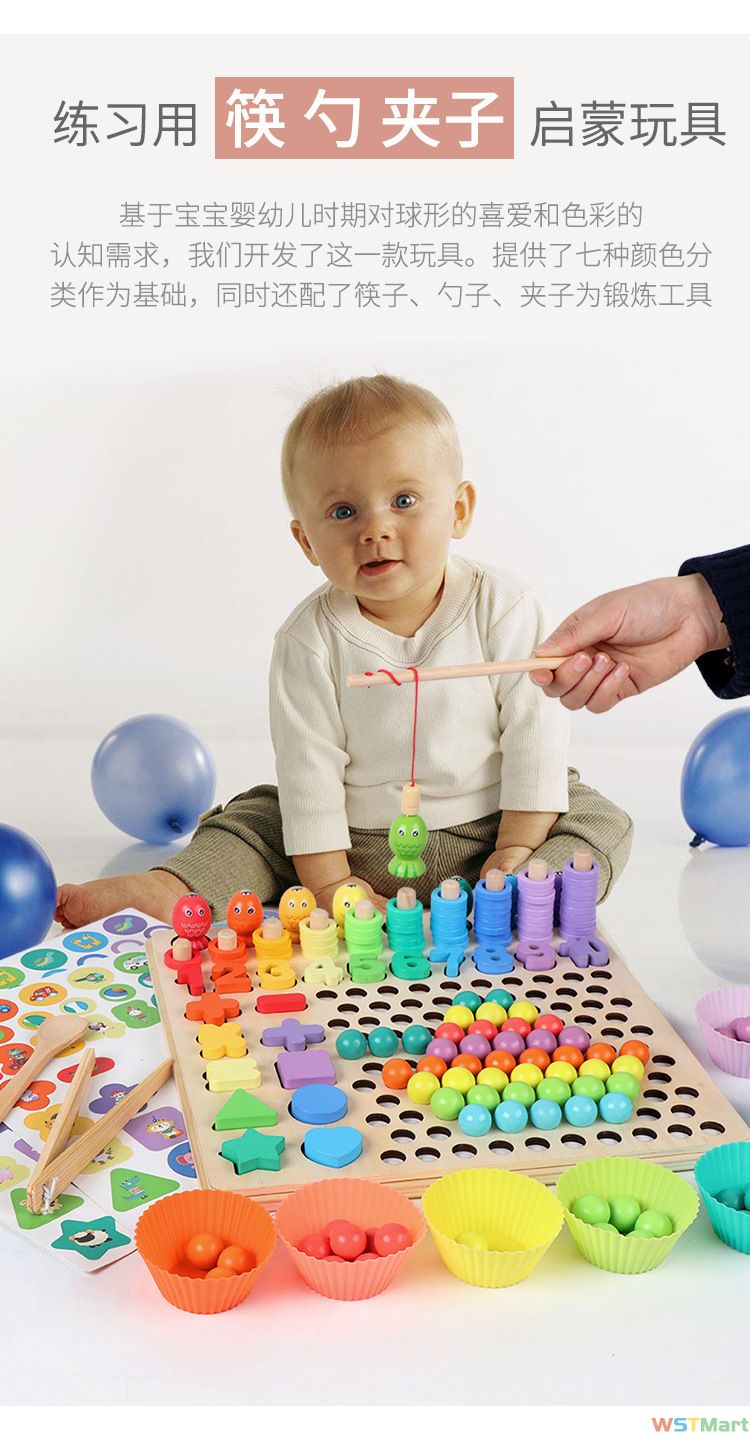木质十三合一夹珠子夹筷子钓鱼记忆棋儿童专注力思维训练益智玩具