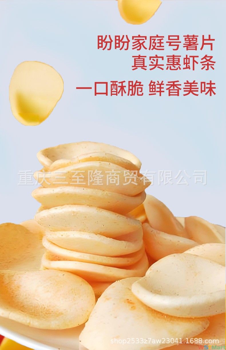 金黄酥脆的虾条,每一根都散发着浓郁的鲜虾香气。精心挑选优质虾肉,经多道工序研磨成粉后制作,口感纯正,虾肉的鲜美在舌尖绽放。轻咬一口,“咔嚓”作响,那美妙的声音伴随着恰到好处的咸香,令人欲罢不能。无论是休闲时刻独自享用,还是与朋友欢聚时分享,虾条都是绝佳的美味零食,给你带来满满的愉悦与满足。