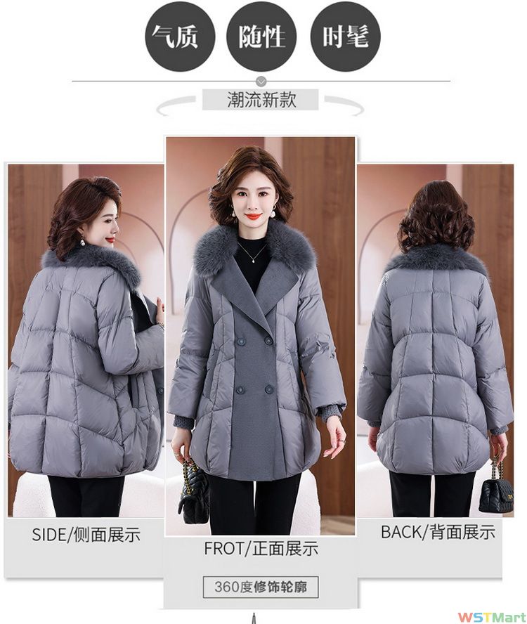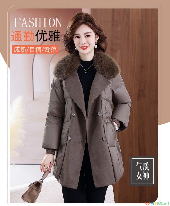 妈妈冬装羽绒服女新款中老年人中长款洋气冬天大码加厚白鸭绒