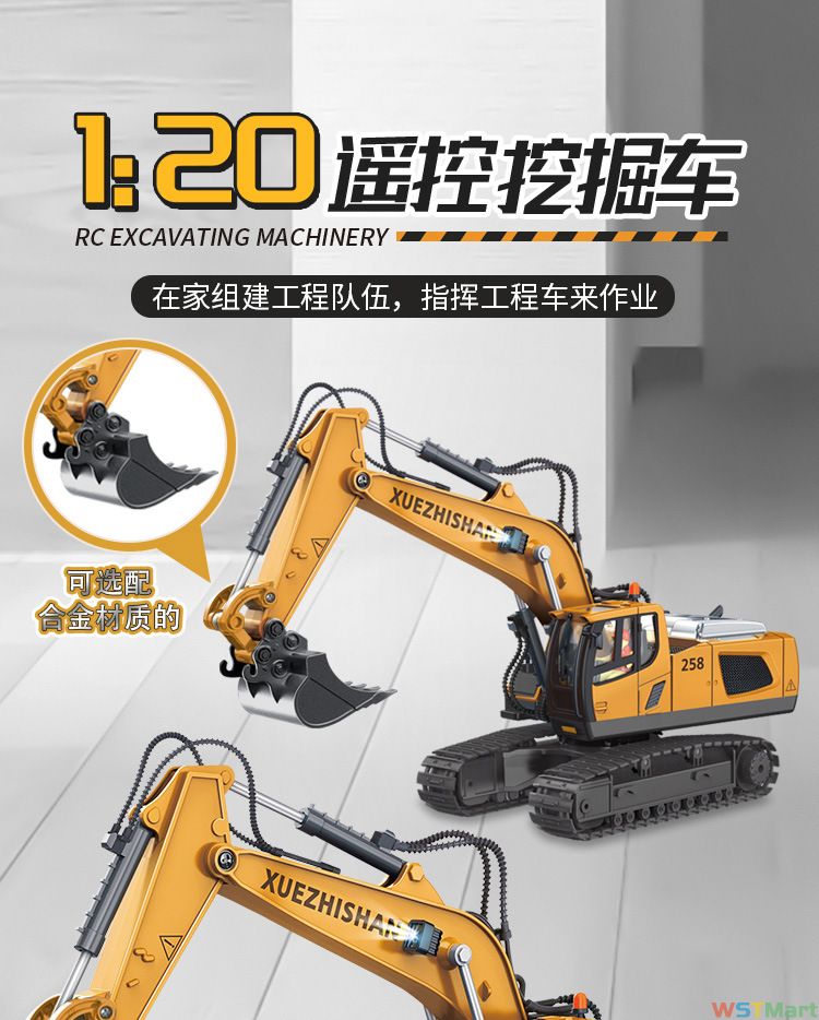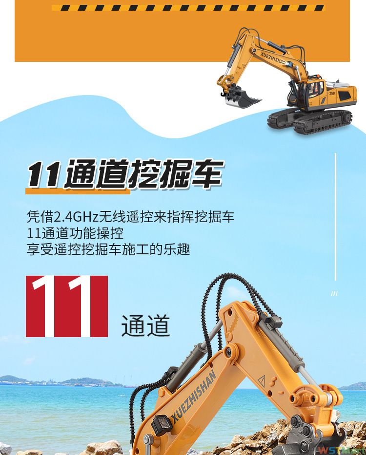 跨境儿童大号合金遥控挖掘机11通道履带挖土机男孩工程遥控车玩具