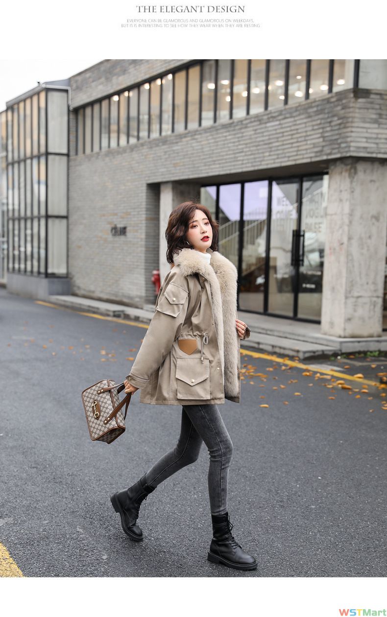 实拍狐狸大毛领派克服羽绒服女2024新款冬季韩版小个子加绒加厚