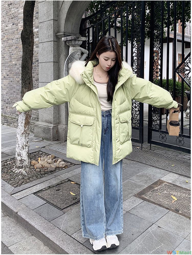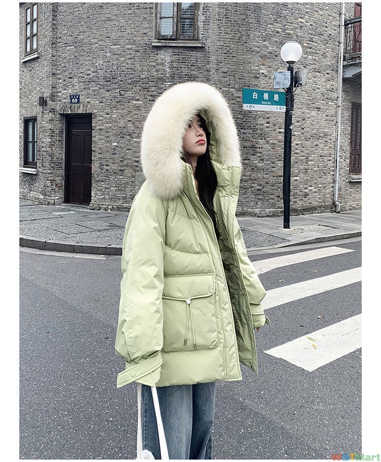 白鸭绒连帽冬季2023新款女韩版中长款羽绒服小个子加厚宽松面包服