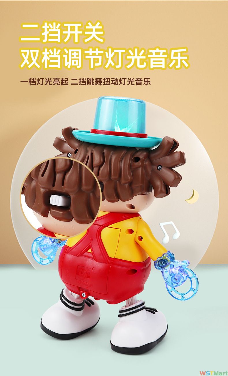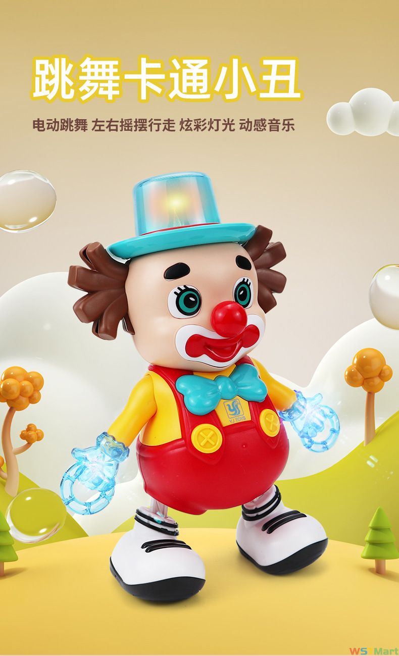 跨境新品热卖电动跳舞小丑卡通人偶灯光音乐左右摇摆公仔玩具批发