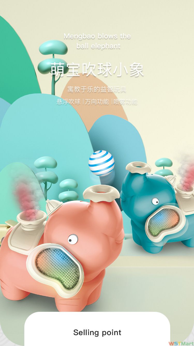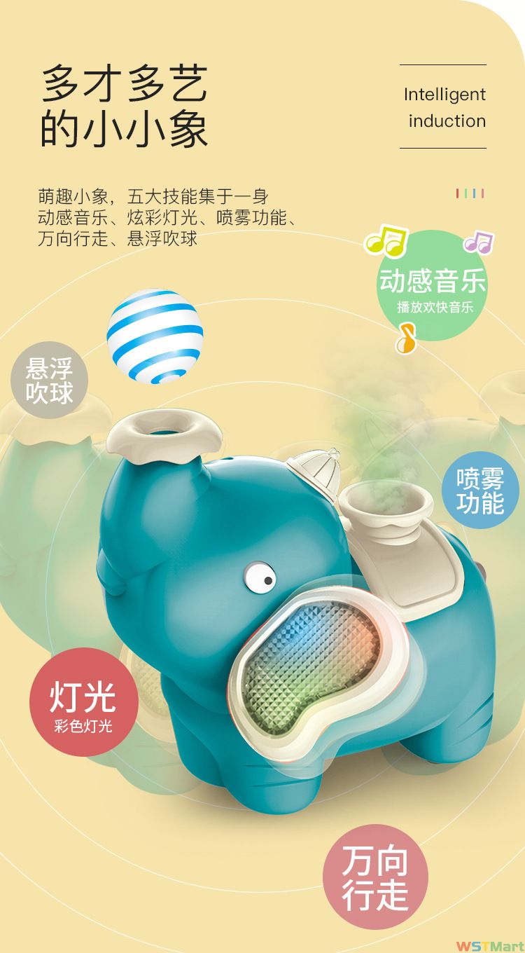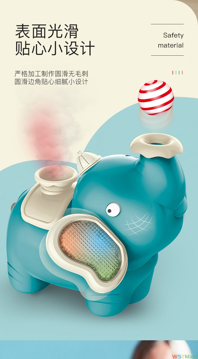 抖音喷雾小象电动玩具儿童卡通造型万向声光会冒烟悬浮球吹球小象