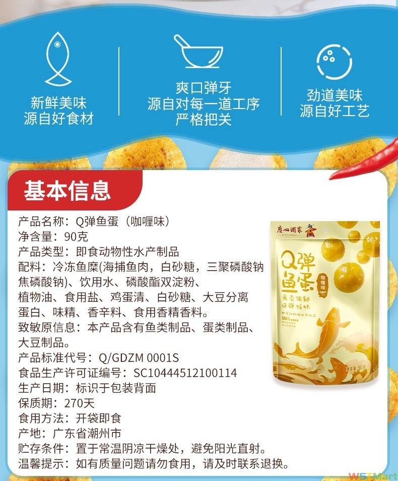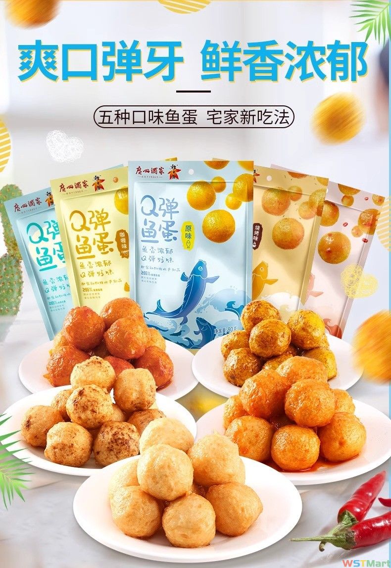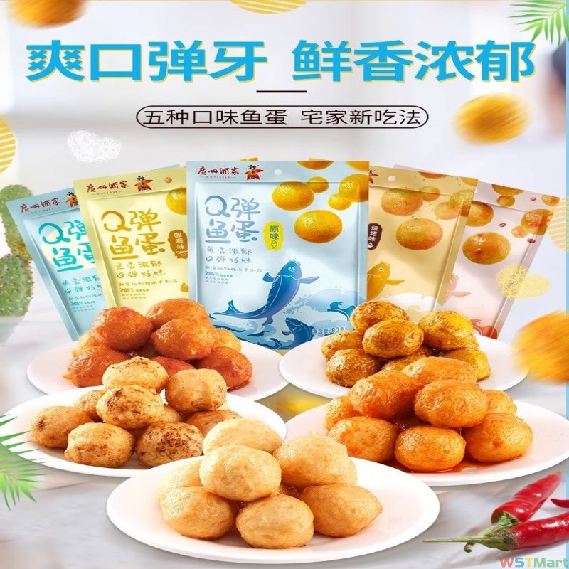 广州酒家日式鱼蛋原味辣味鱼丸黄金咖喱味小吃零食休闲食品即食品