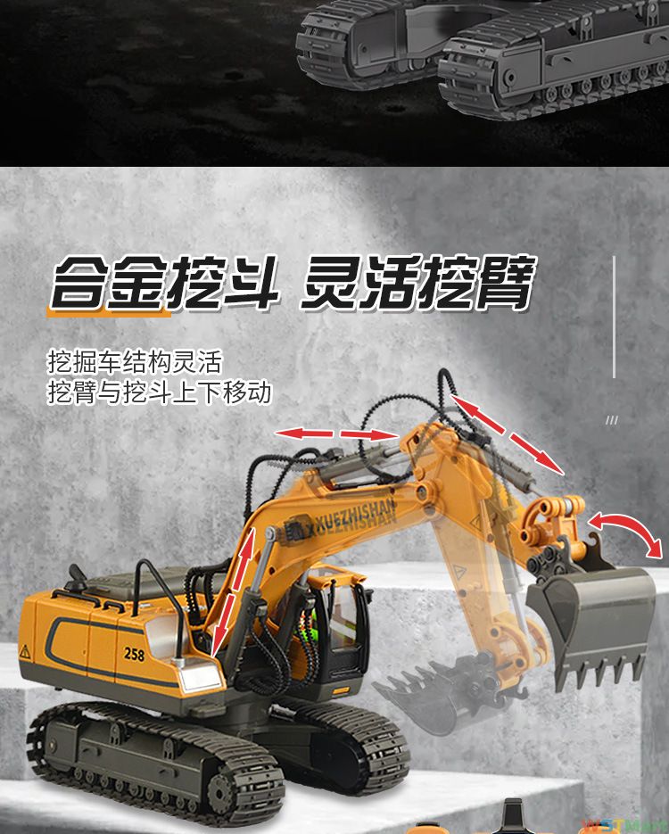 儿童大号合金遥控挖掘机11通道履带挖土机男孩工程遥控车玩具