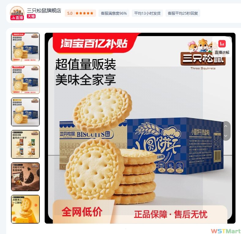 三只松鼠小圆饼奶盐味500g整箱酥香休闲零食品饼干网红好吃办公室
