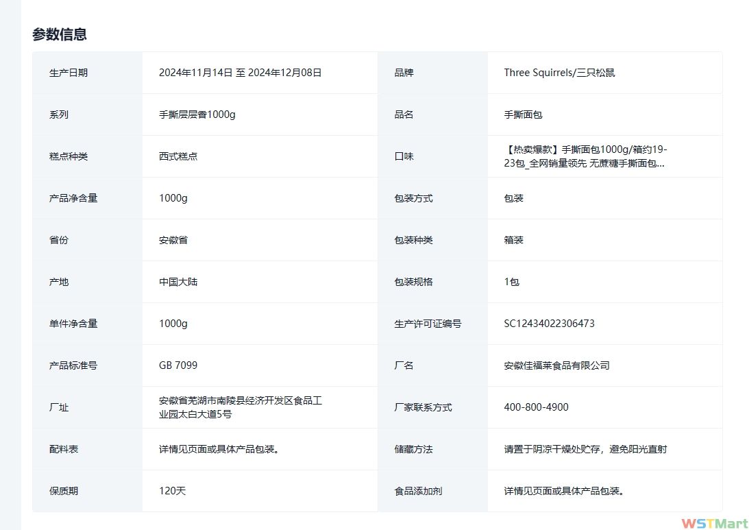 三只松鼠_手撕面包1kg早餐蛋糕点心健康吐司休闲食品整箱零食代餐