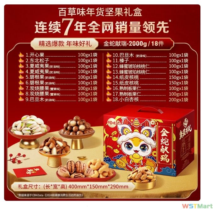 百草味纯坚果礼盒生肖款金蛇献瑞2000g零食大礼包过年送长辈礼品