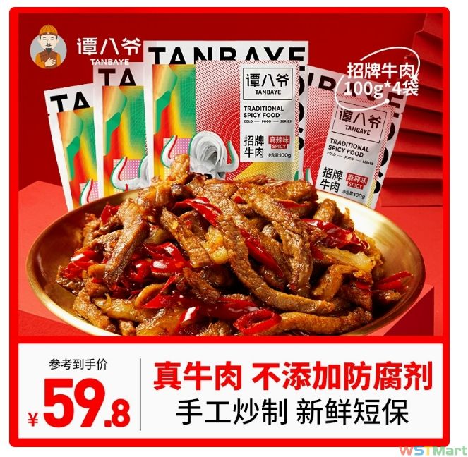谭八爷麻辣冷吃牛肉100g*4袋四川特产牛肉干卤味熟食零食小吃