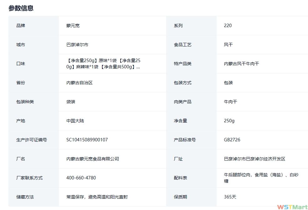 蒙元宽牛肉干风干牛肉干办公零食内蒙特产独立包装休闲零食250g