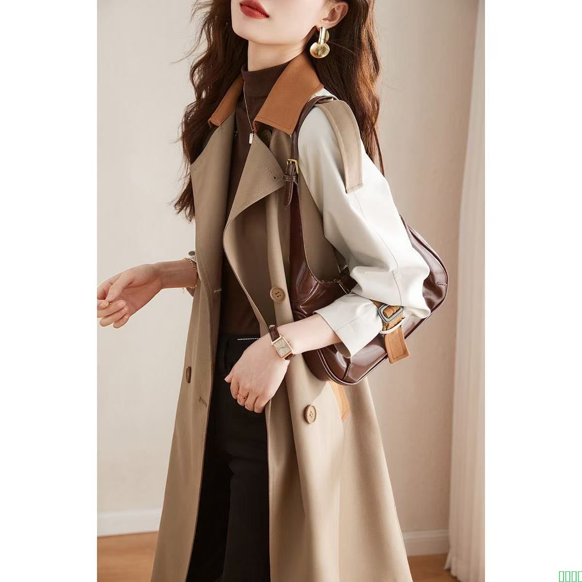 MOHO&MO 2024秋季新款高级感英伦风显高拼色中长款气质炸街风衣