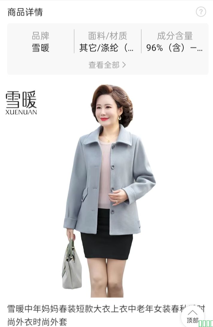 蓝旗中年妈妈春装短款大衣上衣中老年女装春秋季时尚外衣时尚外套
