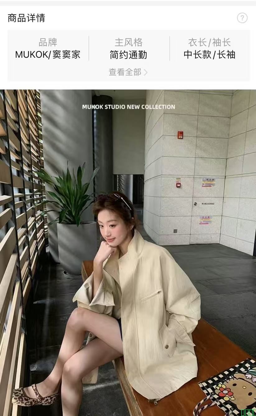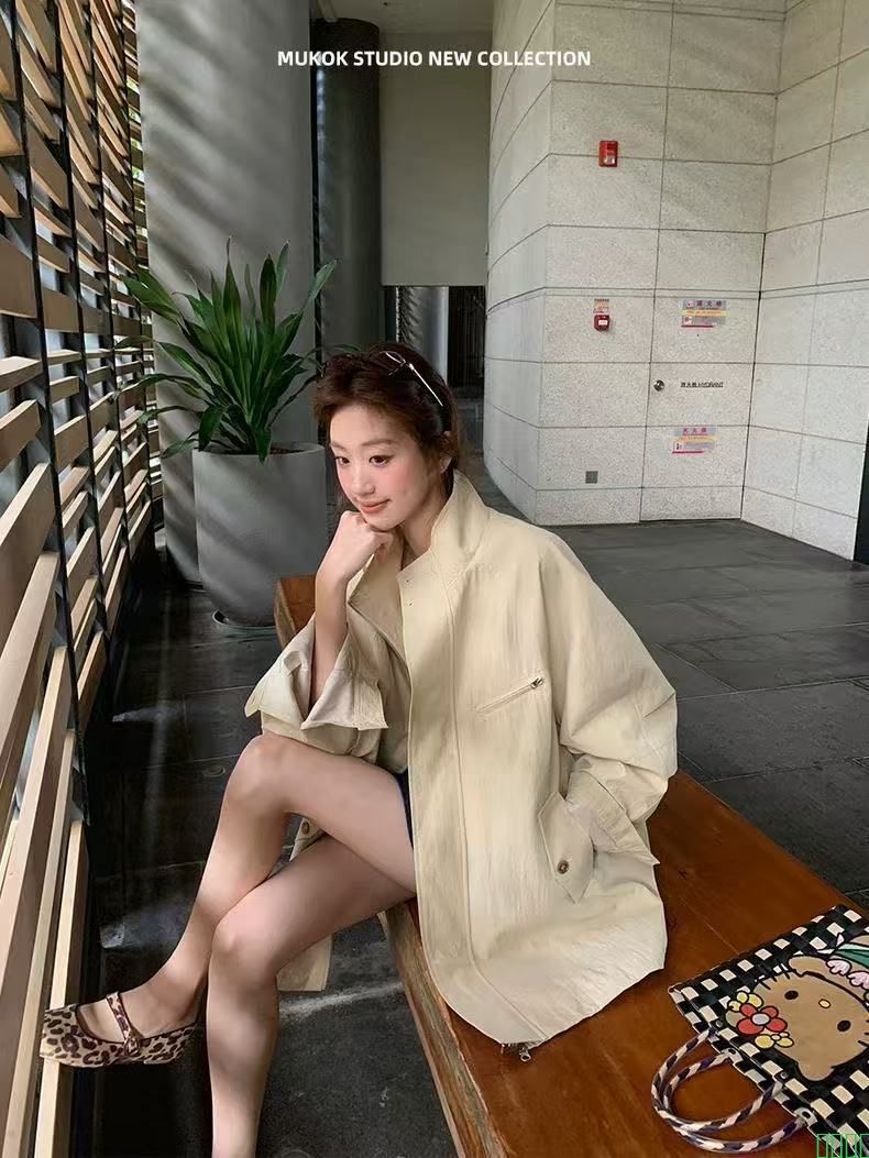 MUKOK费城风衣~廓形简约立领一粒扣气质风衣外套女中长款外套