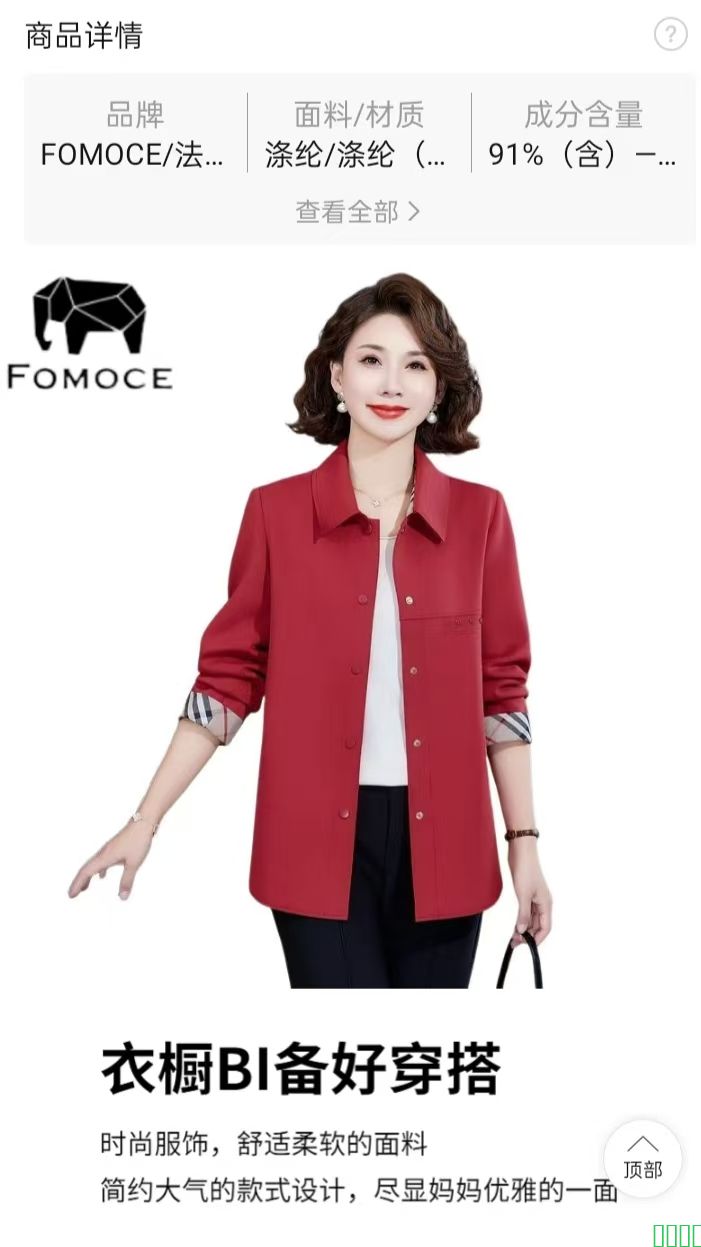 FOMOCE2025春款纯色休闲宽松短款时尚中老年妈妈外套大码显瘦风衣