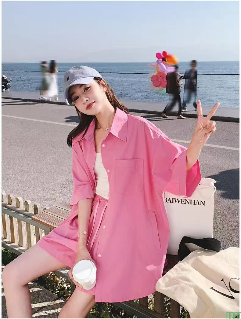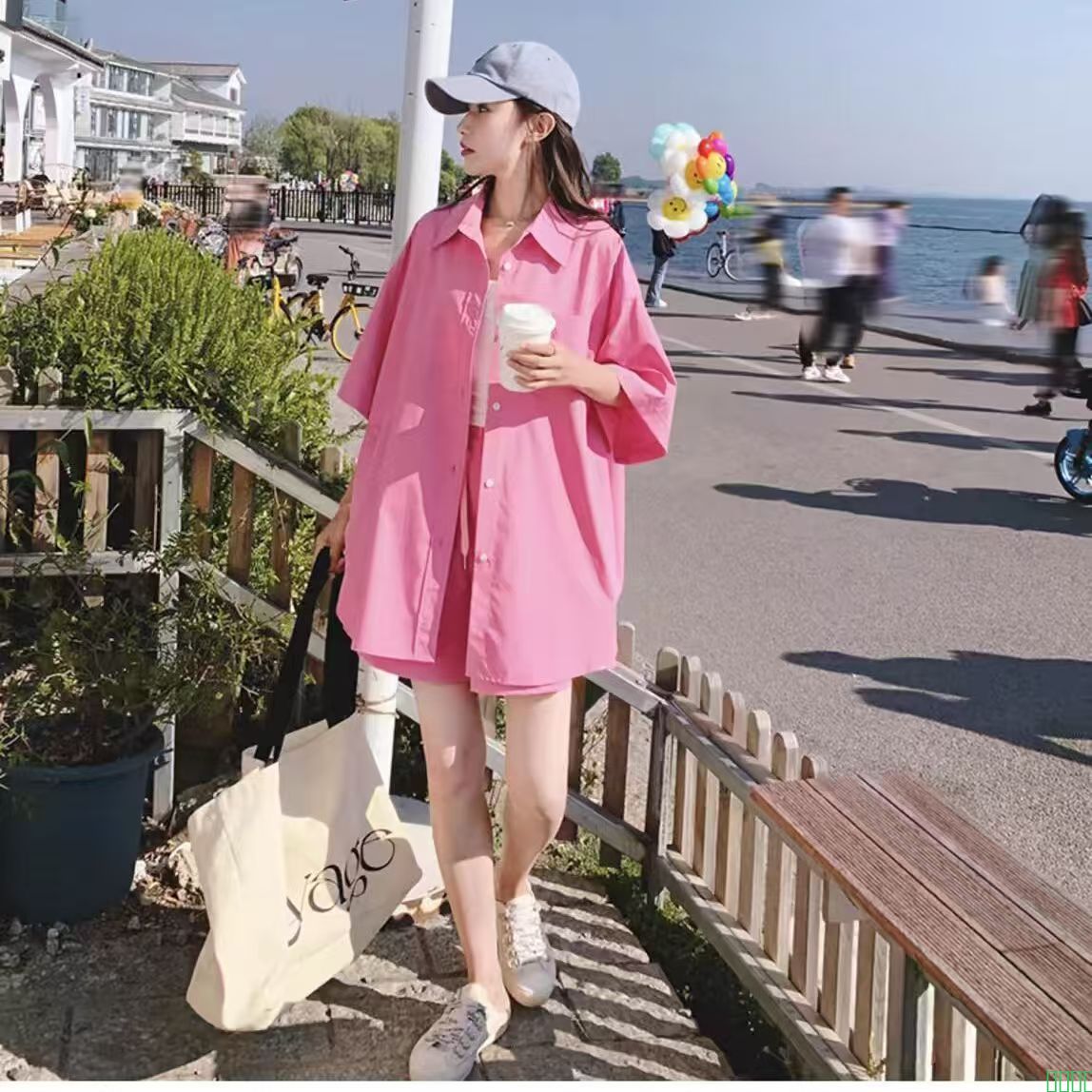 粉色减龄套装2024新款夏季可盐可甜时尚小清新宽松短裤休闲两件套