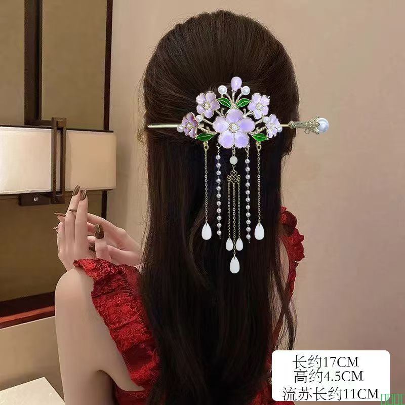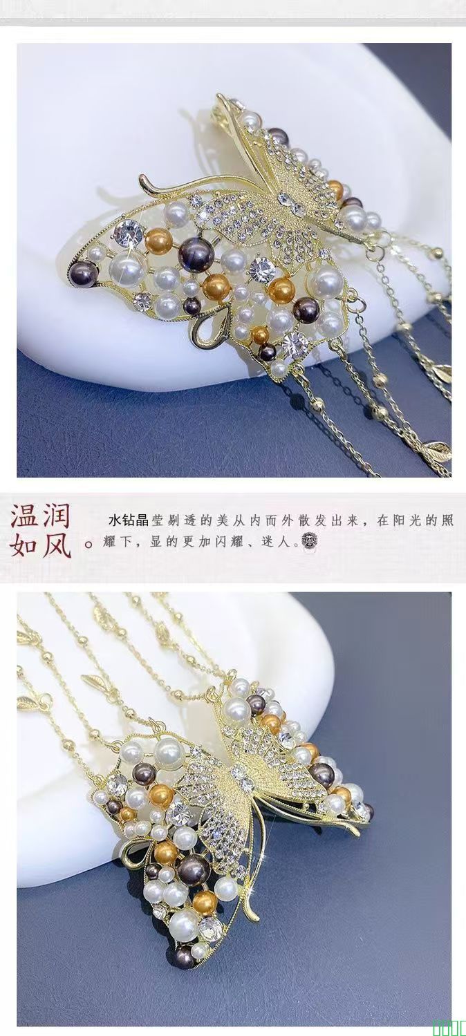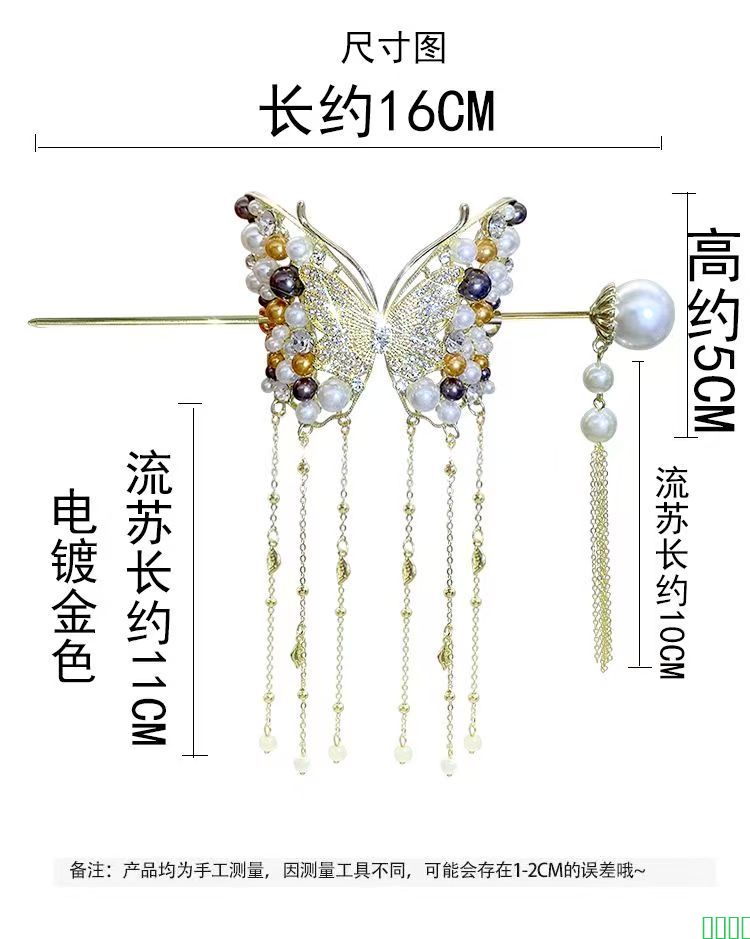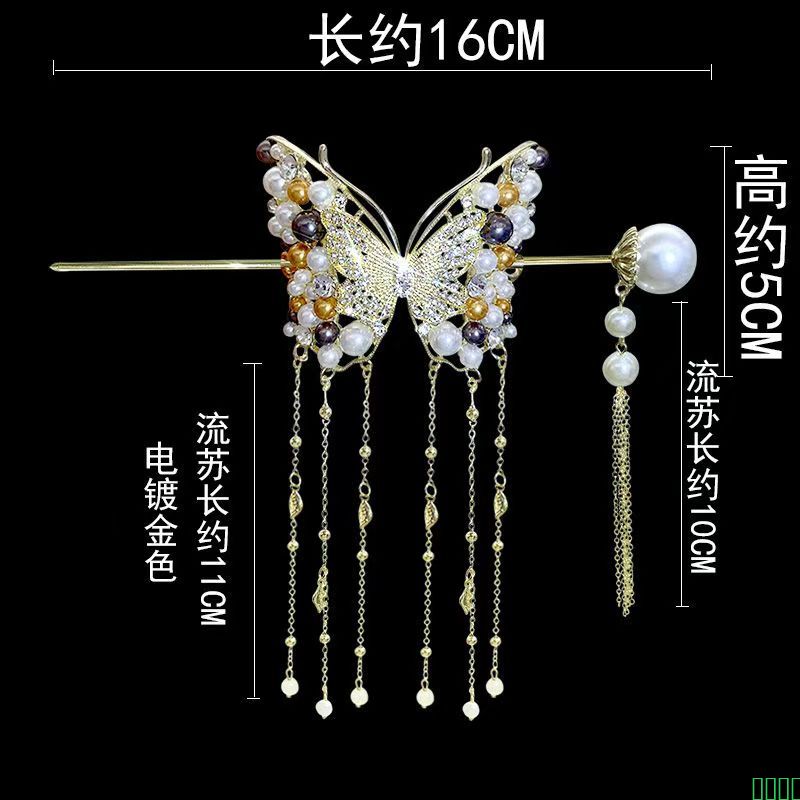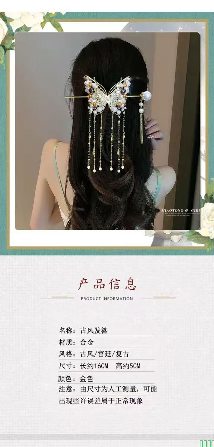 高级感珍珠蝴蝶流苏簪子中国风后脑勺发簪国风旗袍发钗复古风头饰