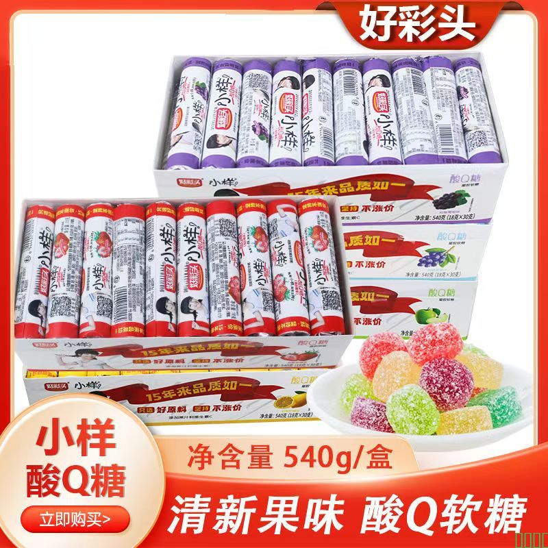 好彩头小样酸Q糖540g盒装多种果汁口味草莓蓝莓柠檬葡萄苹果QQ糖
