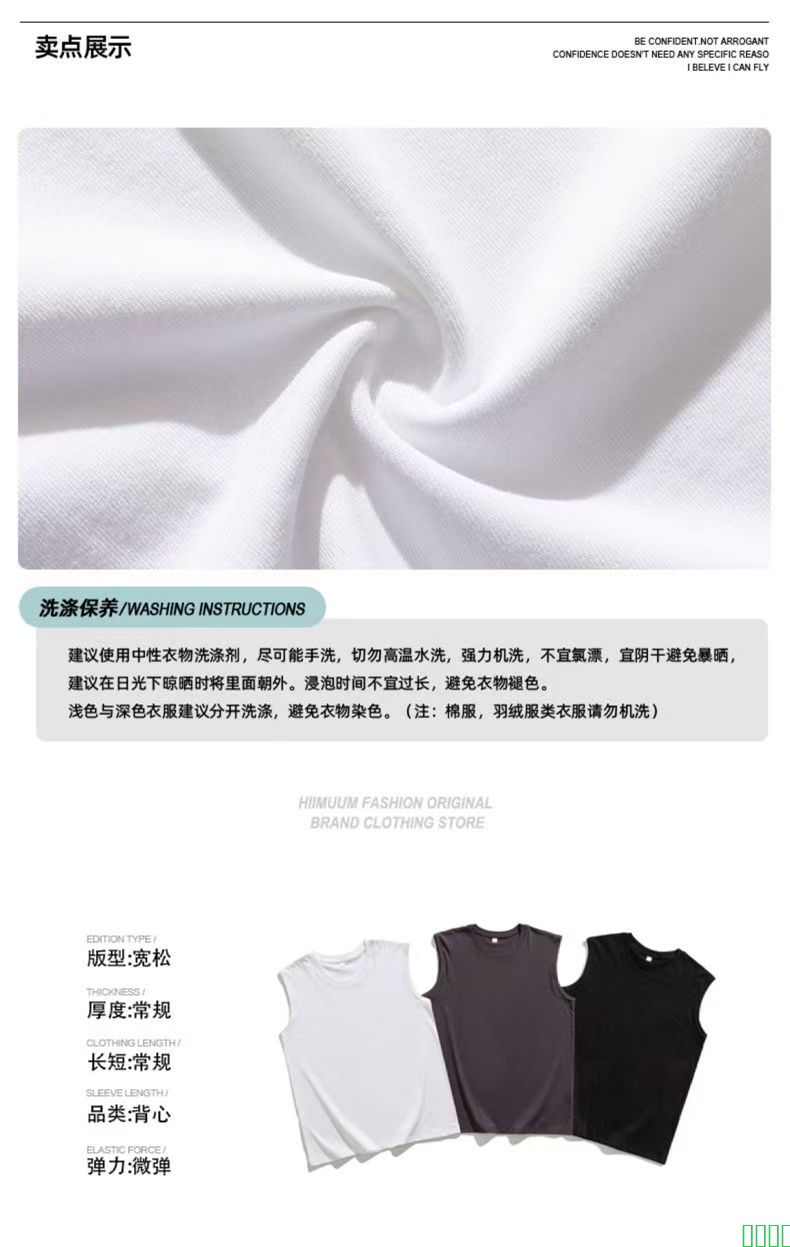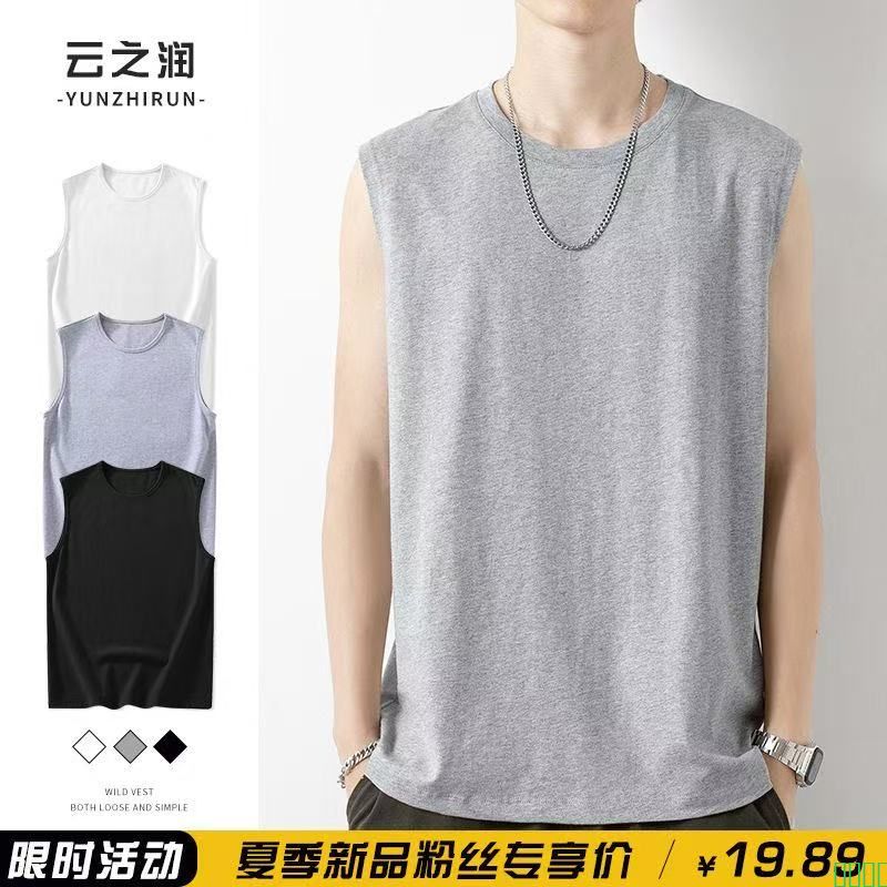 无袖背心男士夏季潮牌纯棉健身运动坎肩衣服打底男装白色短袖t恤