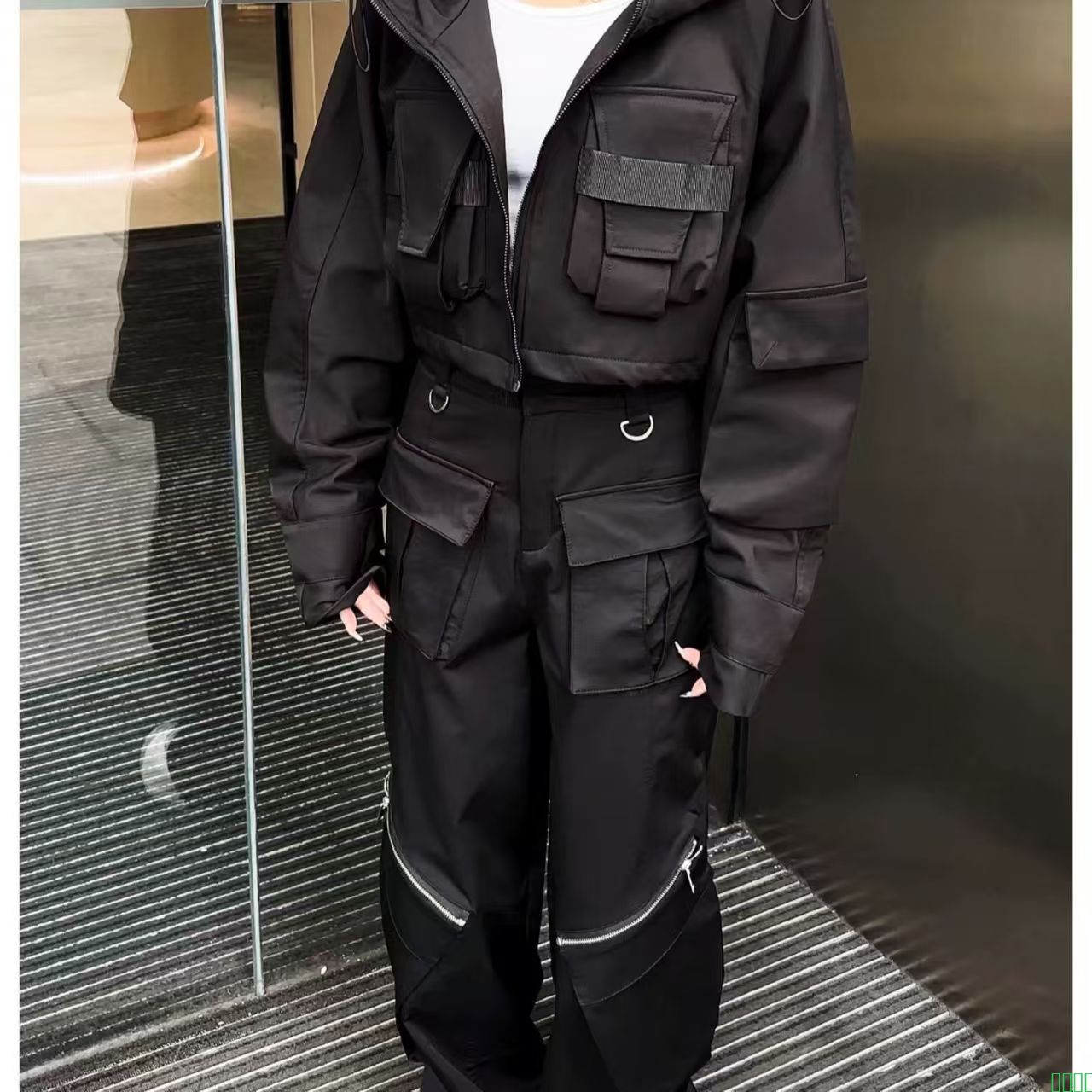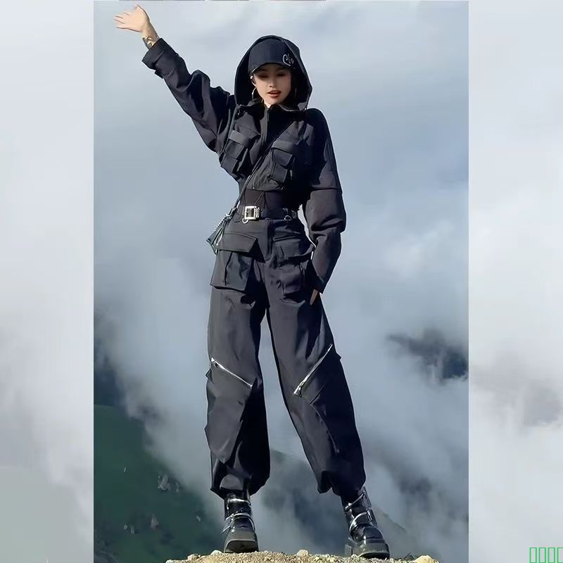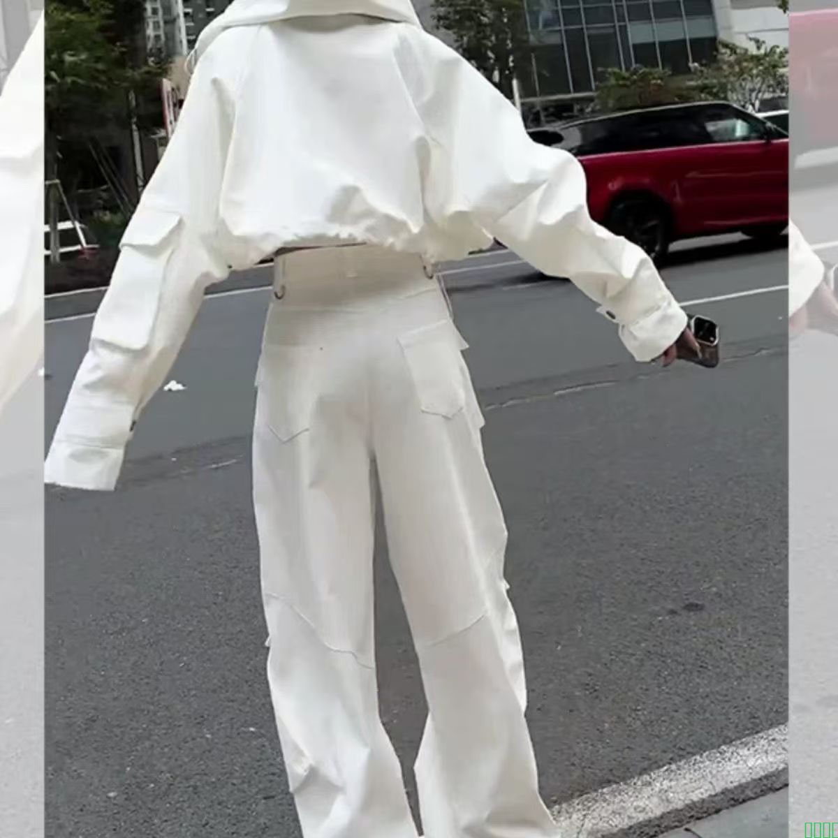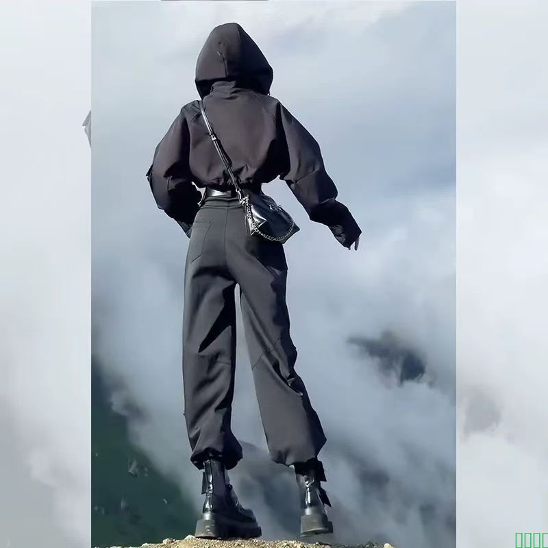 白色时尚休闲运动套装女2025新款高腰显瘦重工街头外套工装阔腿裤