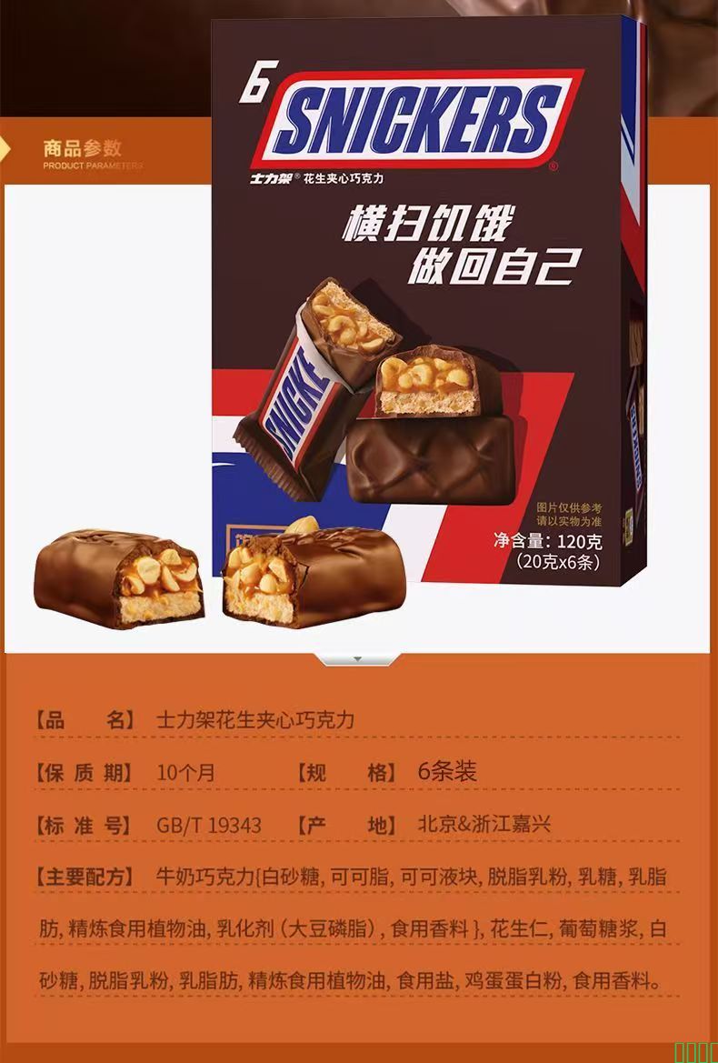 士力架花生夹心巧克力120g盒装休闲零食喜糖充饥糖果20g/条批发