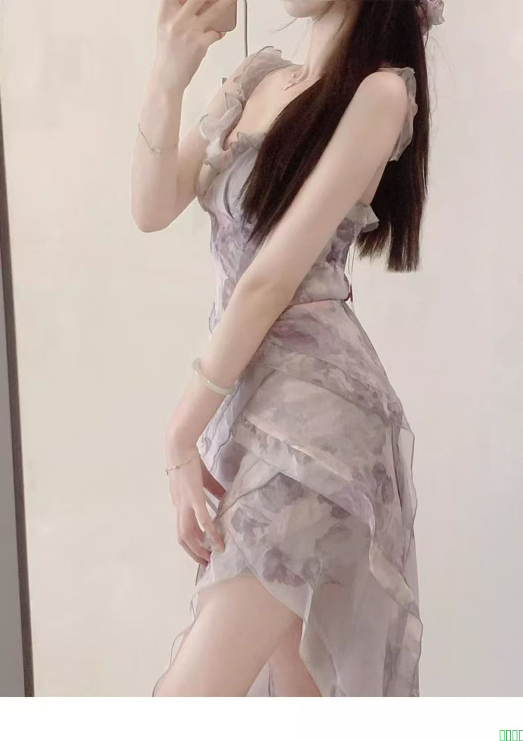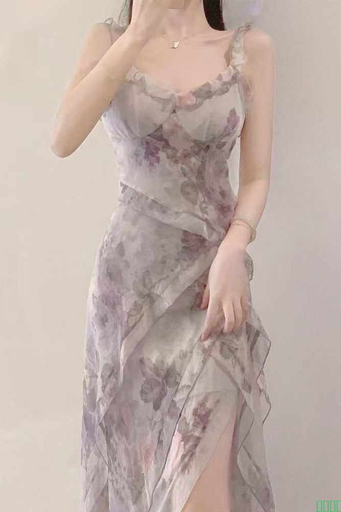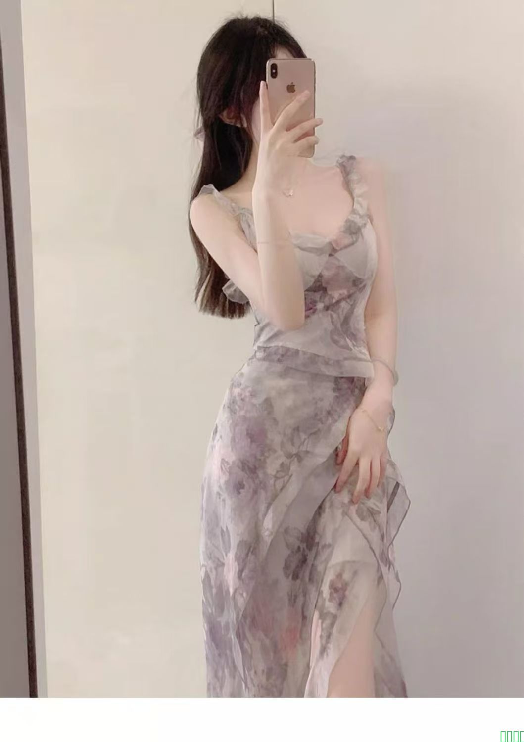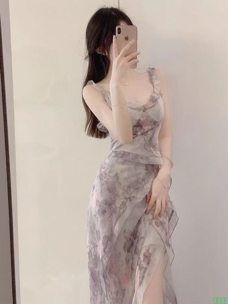 高级感绝美碎花海边度假包臀裙女夏季辣妹性感纯欲风吊带连衣裙女