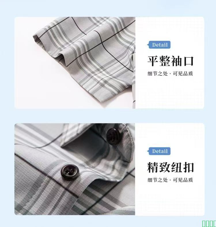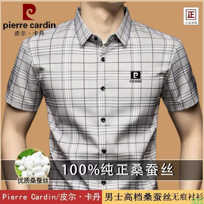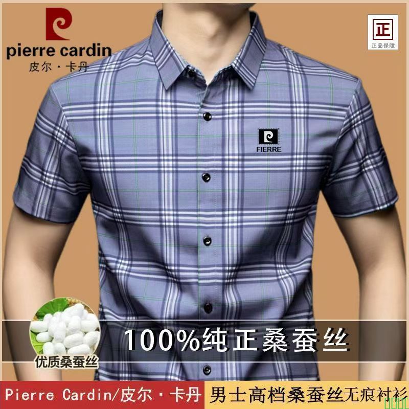 【卓衣帮】皮尔卡丹夏季男士短袖衬衫中年格子休闲上衣薄款