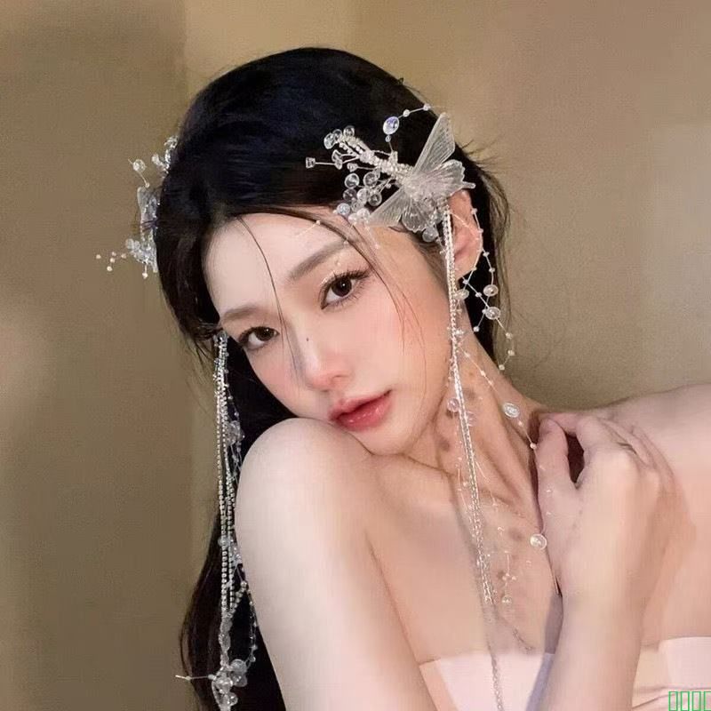 镶钻蝴蝶流苏弹簧夹仙女气质甜美设计发夹时尚高级感仙气发饰