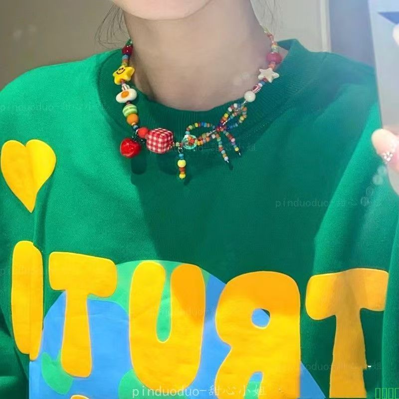 「苹果乐园」多巴胺彩色苹果星星串珠项链2025新款轻奢夏日锁骨链