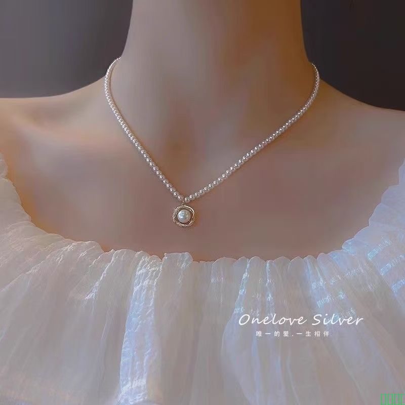 小米玻璃珍珠项链女2025新款爆款轻奢锁骨链小众精致潮吊坠颈链