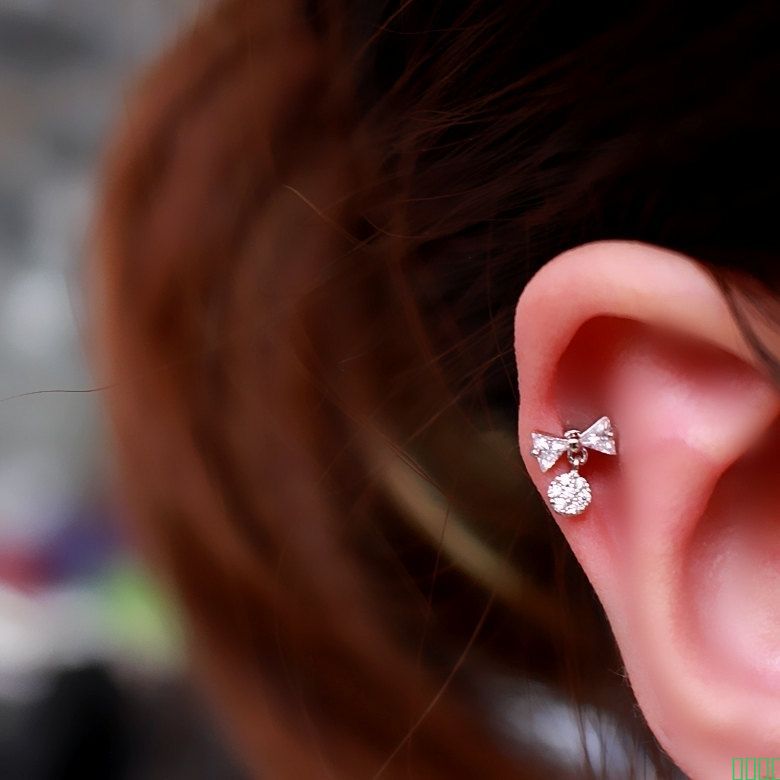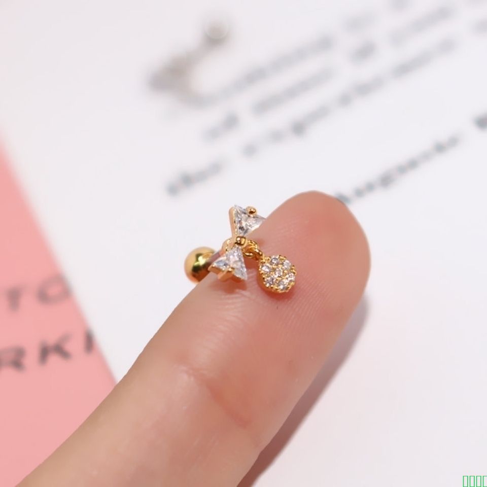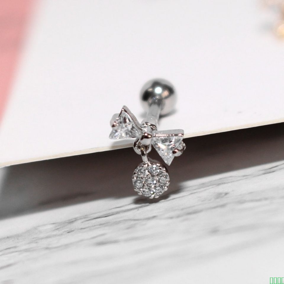 睡觉不用摘钛钢耳骨钉镶钻蝴蝶结吊坠耳钉可爱迷你侧耳小耳朵耳坠