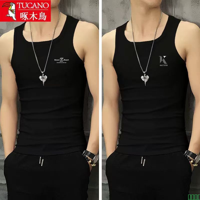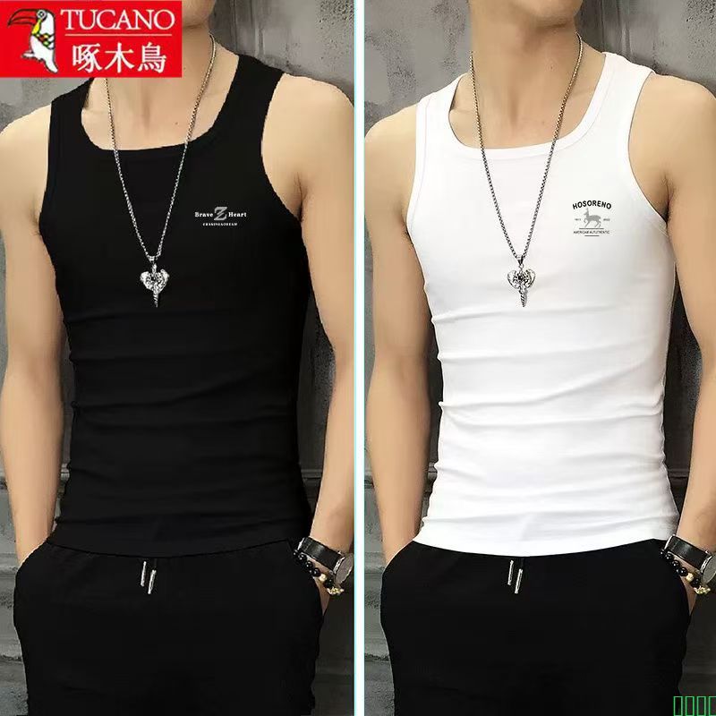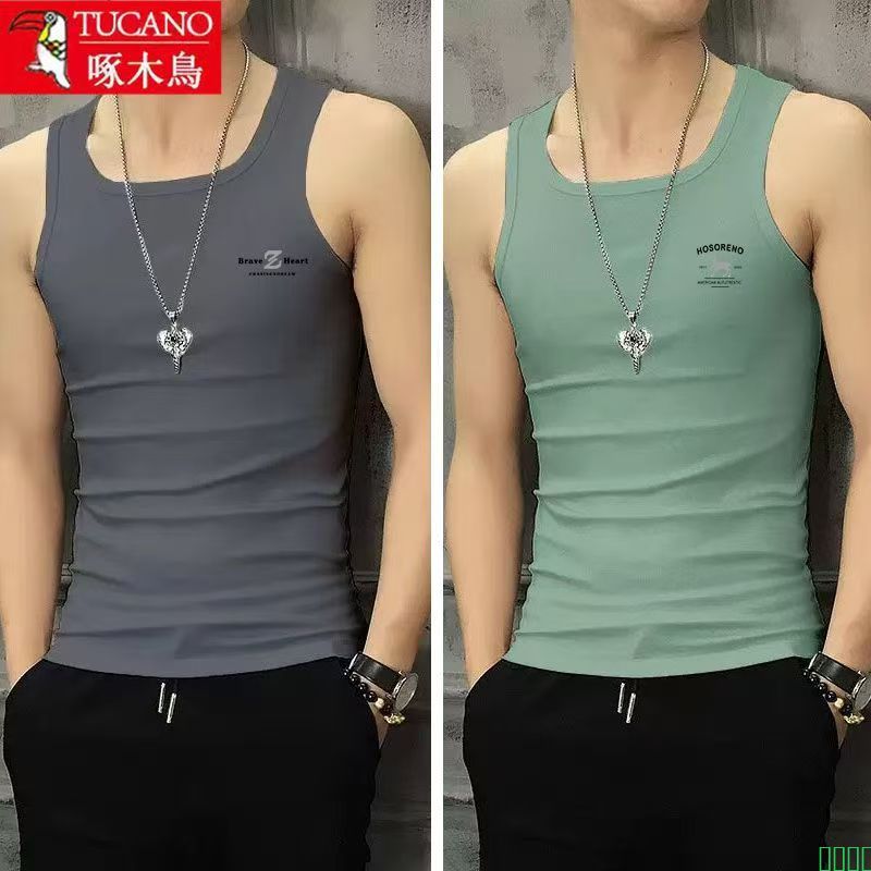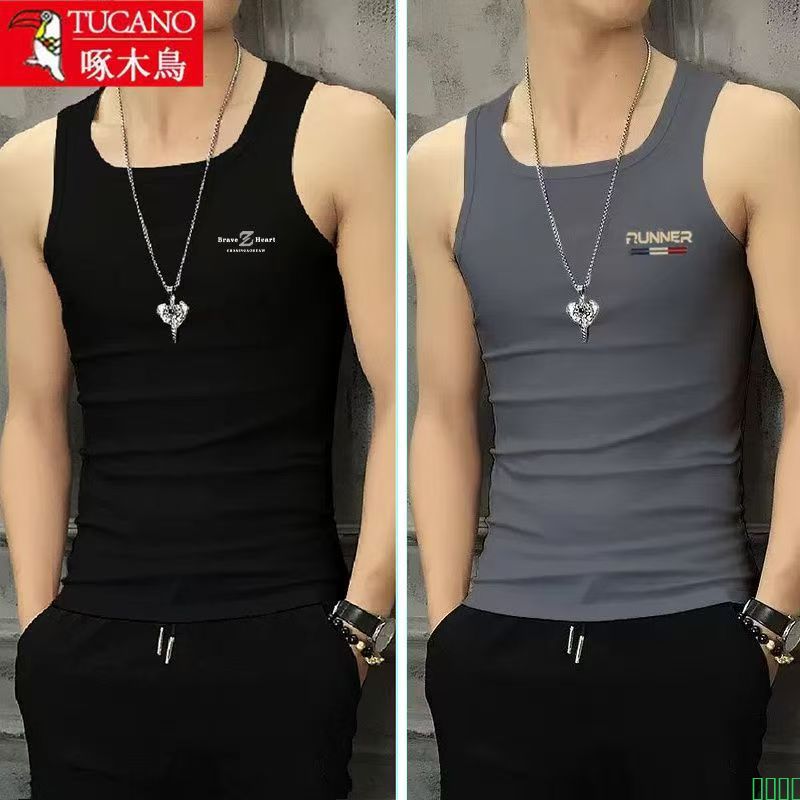 啄木鸟夏季高档纯棉青年背心无袖马甲夏季运动健身汗衫1/2件