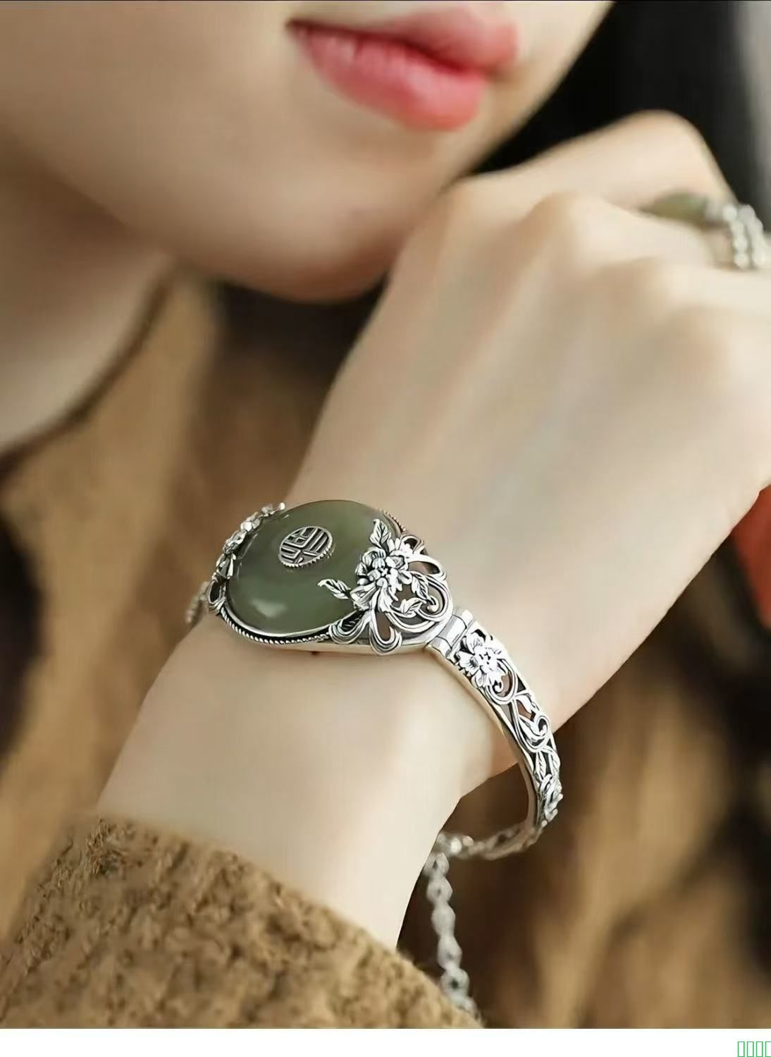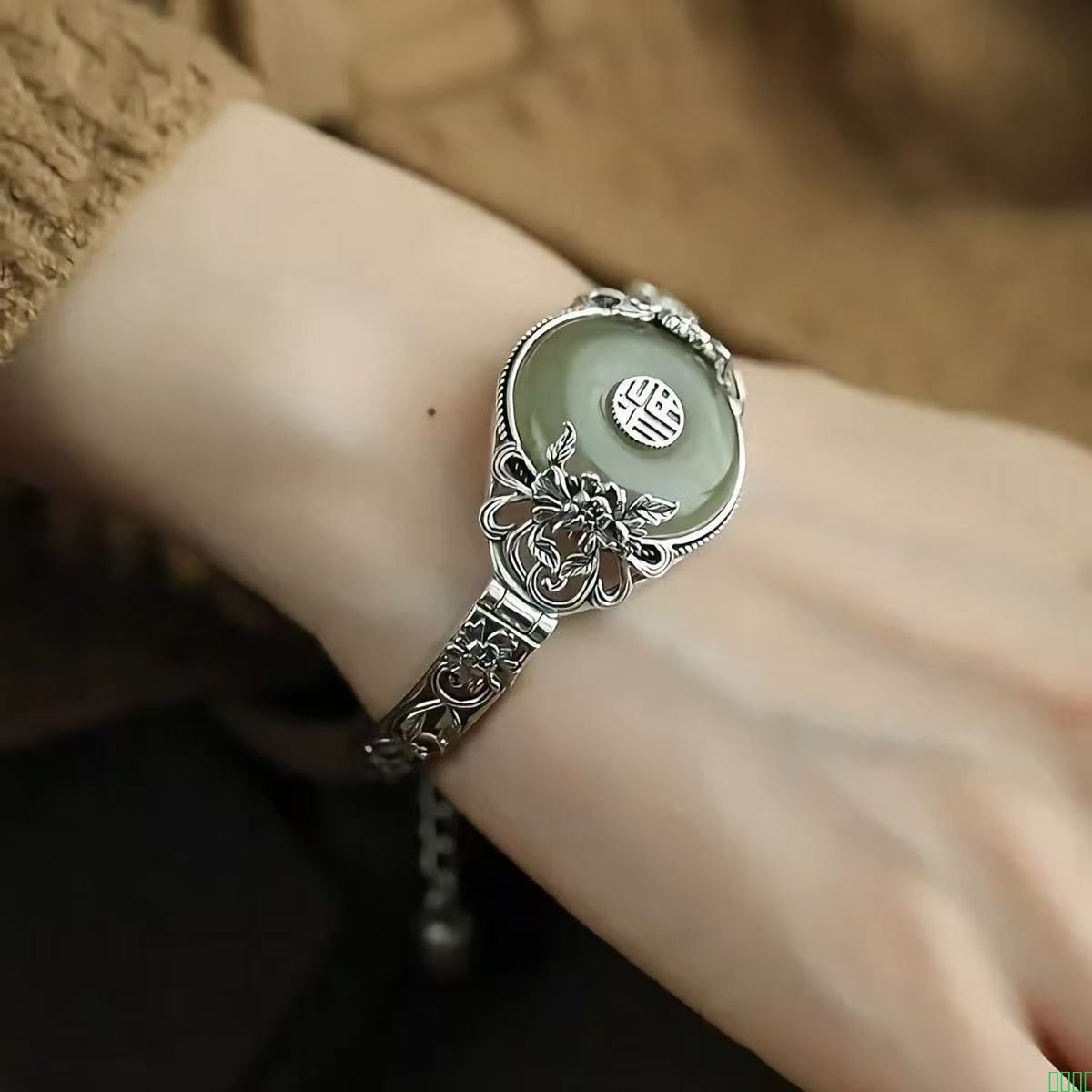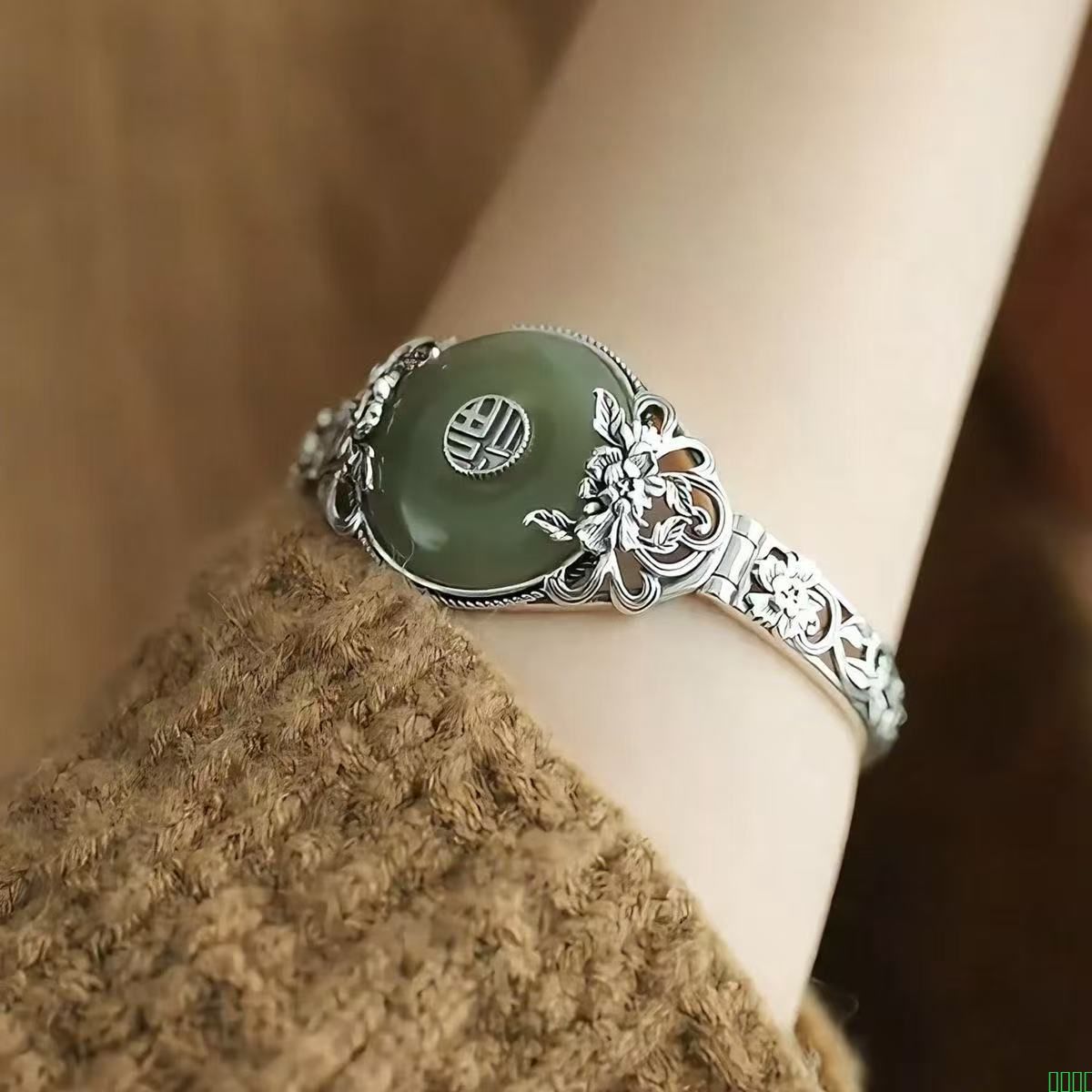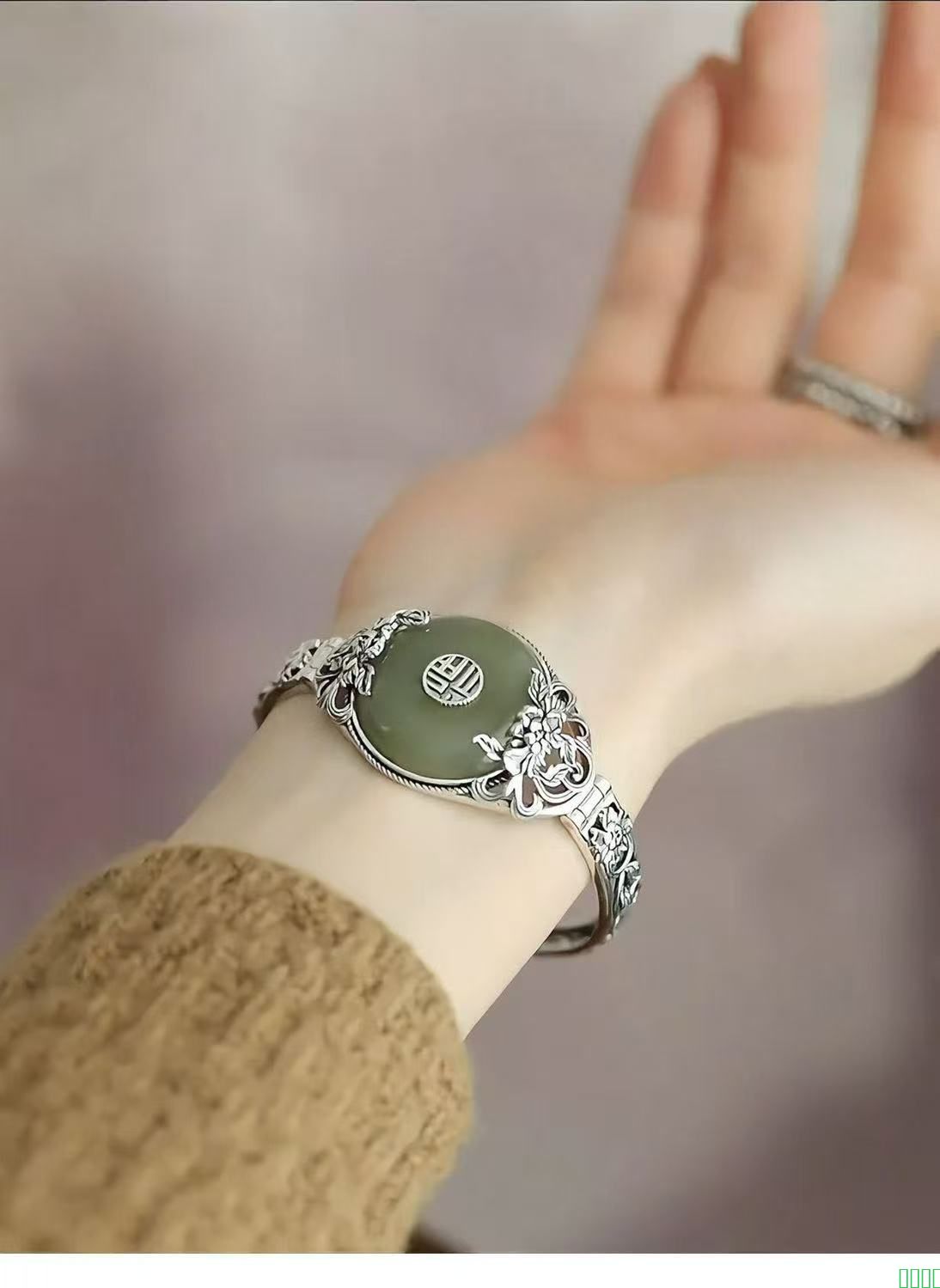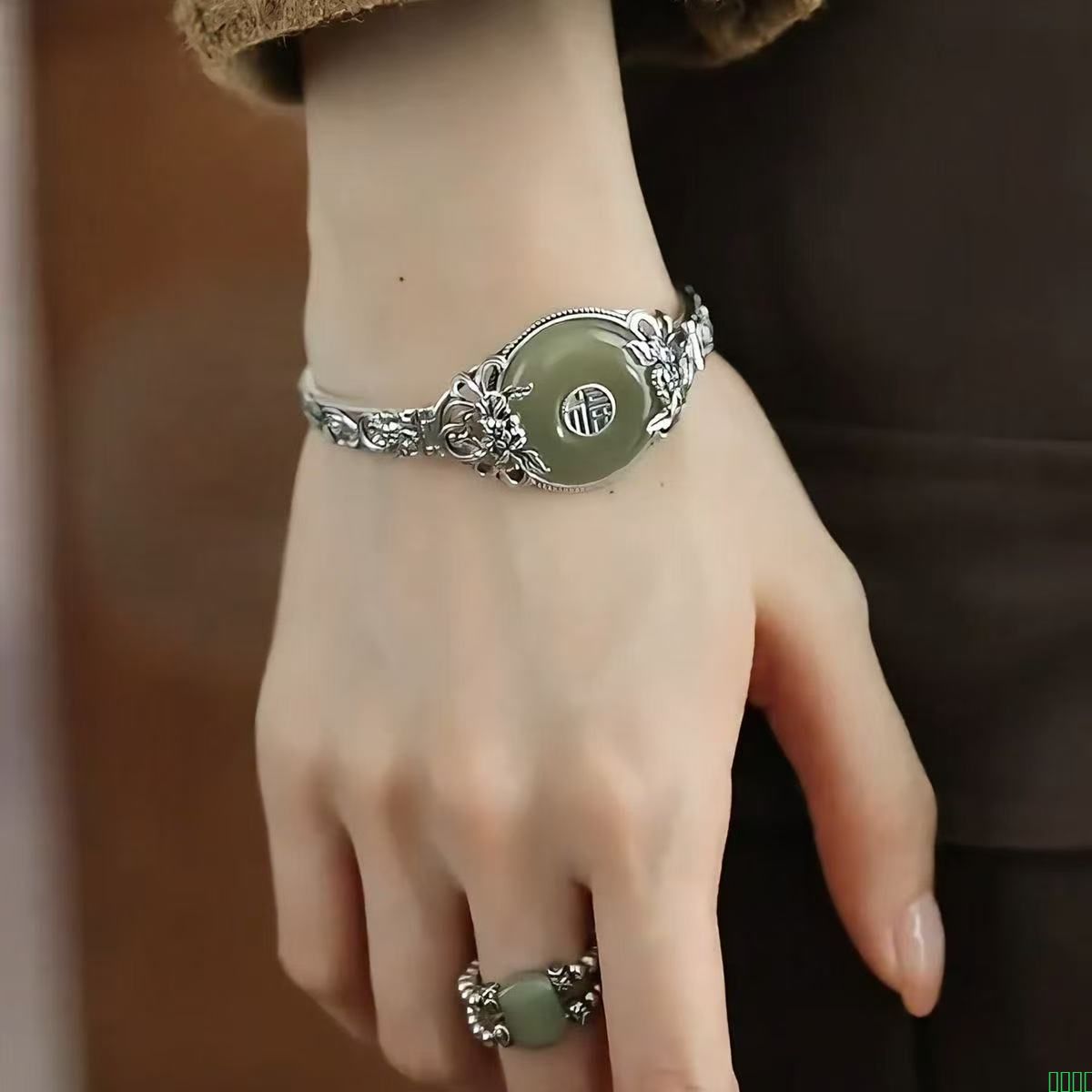 新中式复古牡丹花平安扣镯子女平安福字开口手镯高级感中国风手链