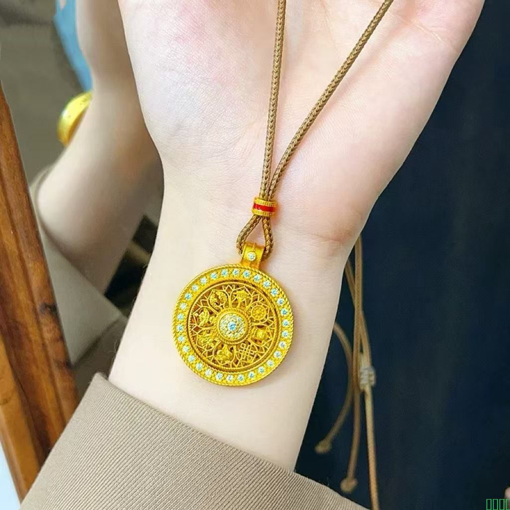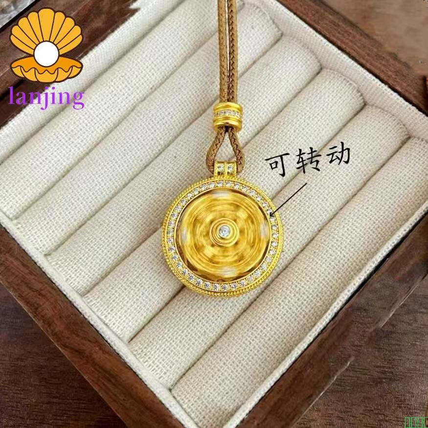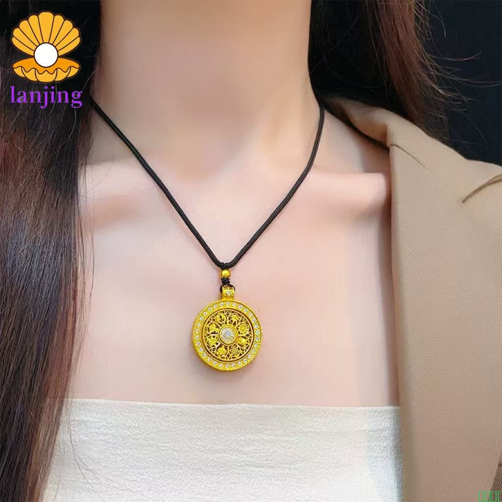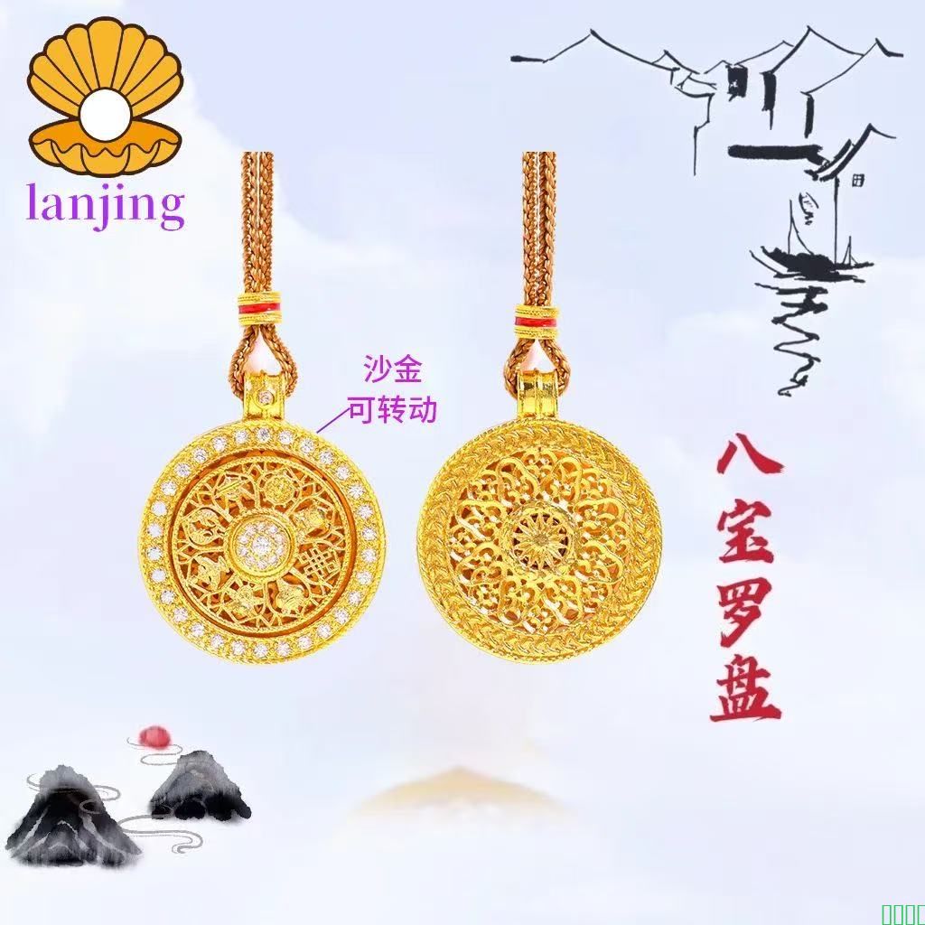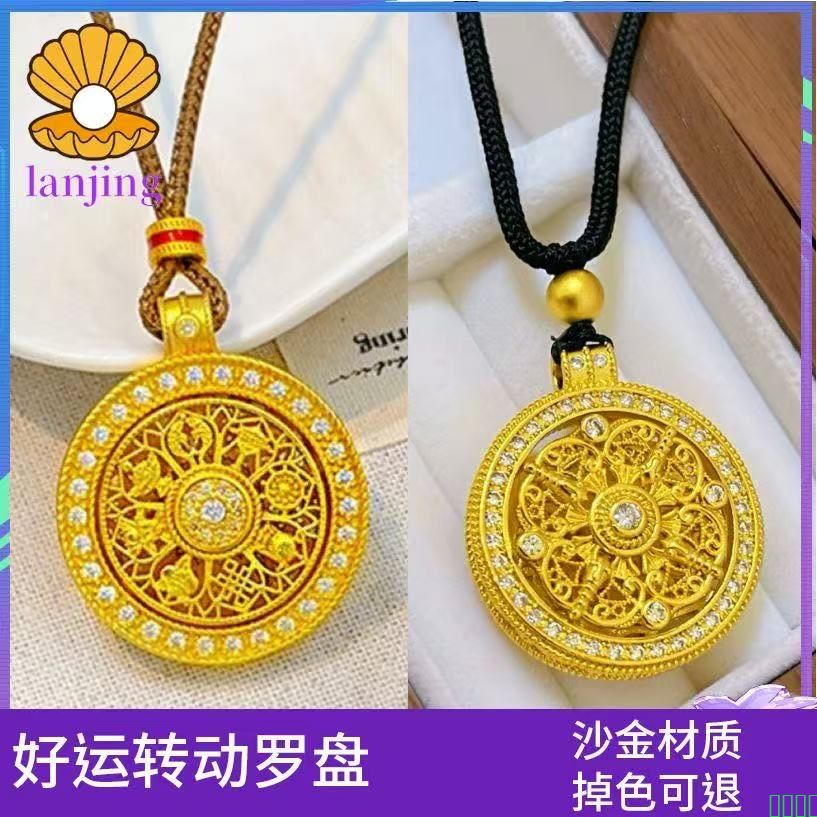 专柜同款沙金八宝项链吊坠镶钻可旋转黄铜罗盘短款毛衣链坠女网红
