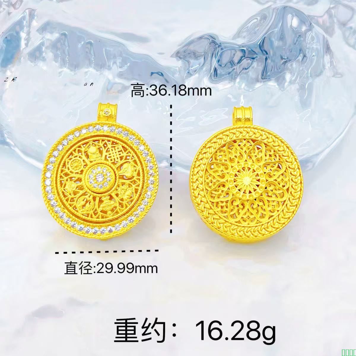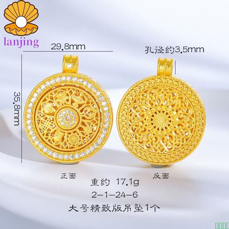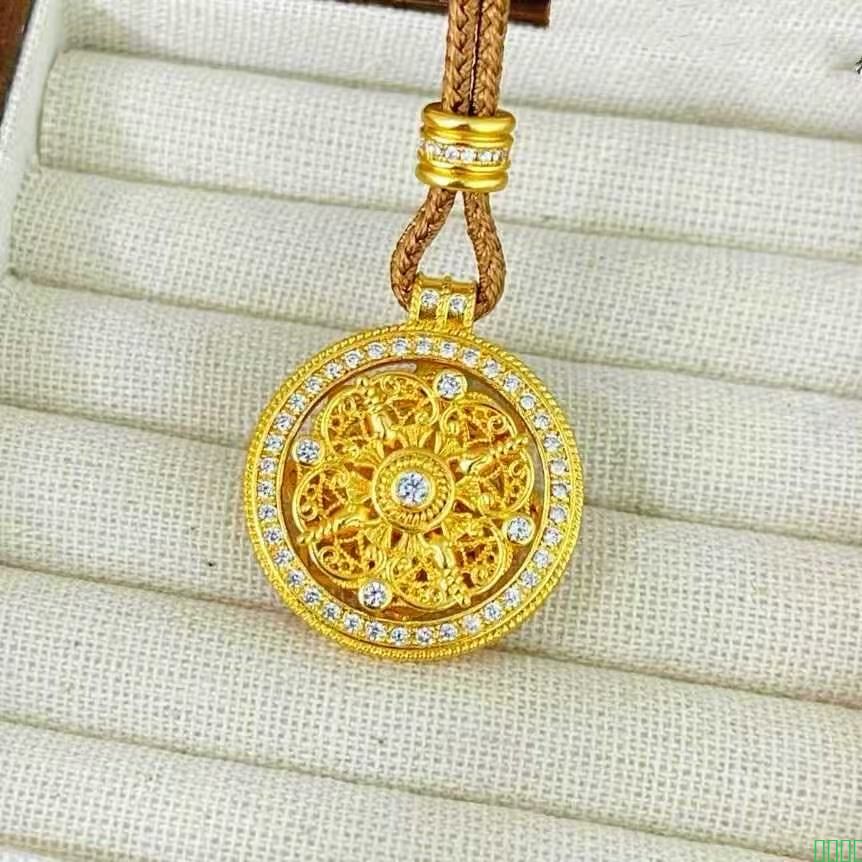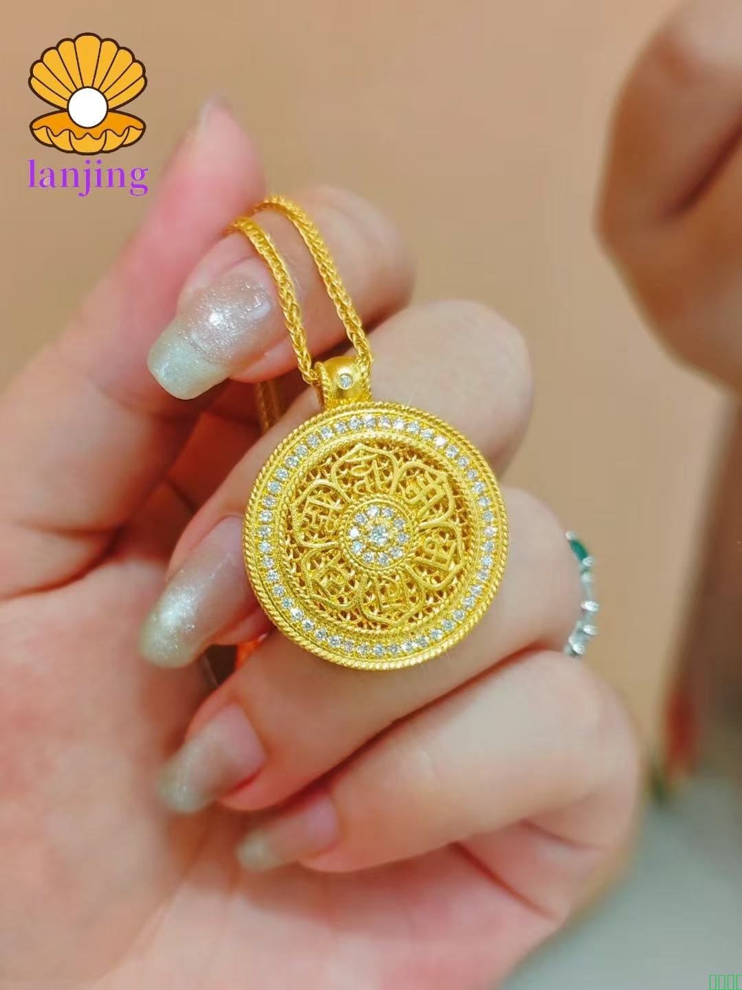 专柜同款沙金八宝项链吊坠镶钻可旋转黄铜罗盘短款毛衣链坠女网红