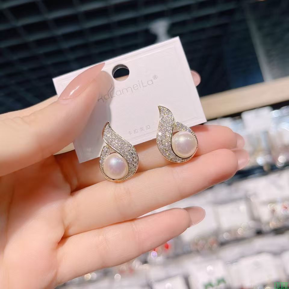 925银针满镶天使之翼珍珠耳环气质高雅设计师款高级感百搭潮耳饰