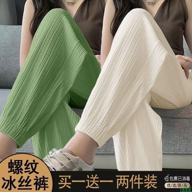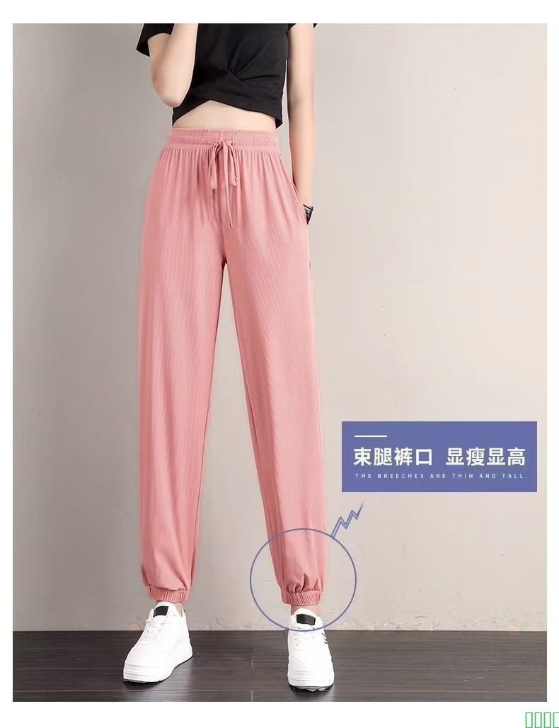 单/两件装 冰丝运动裤女夏季宽松显瘦小个子束脚裤时尚百搭灯笼裤