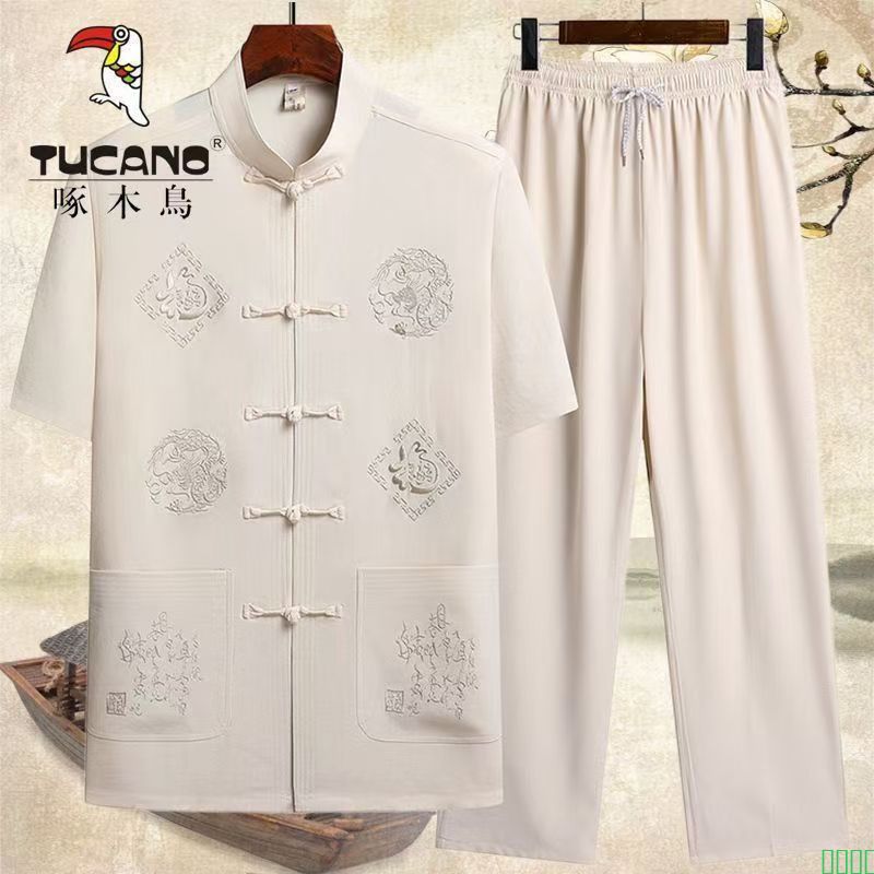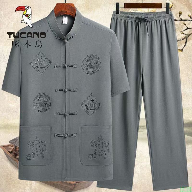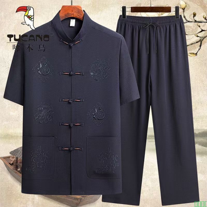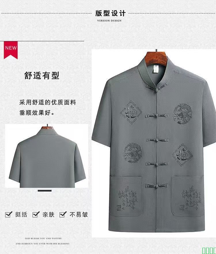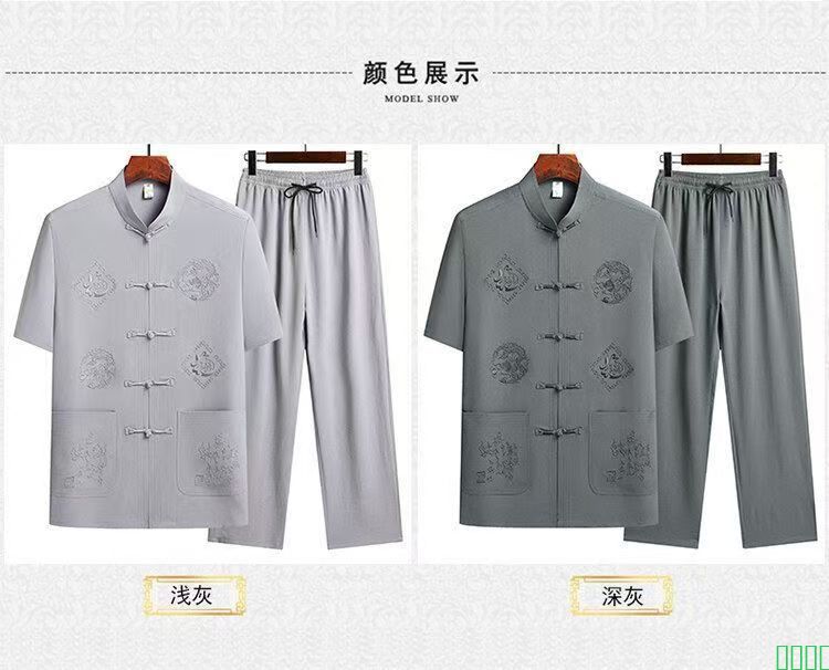 唐装男士中老年短袖桑蚕丝套装爷爷夏装中式爸爸夏季衣服薄款中国