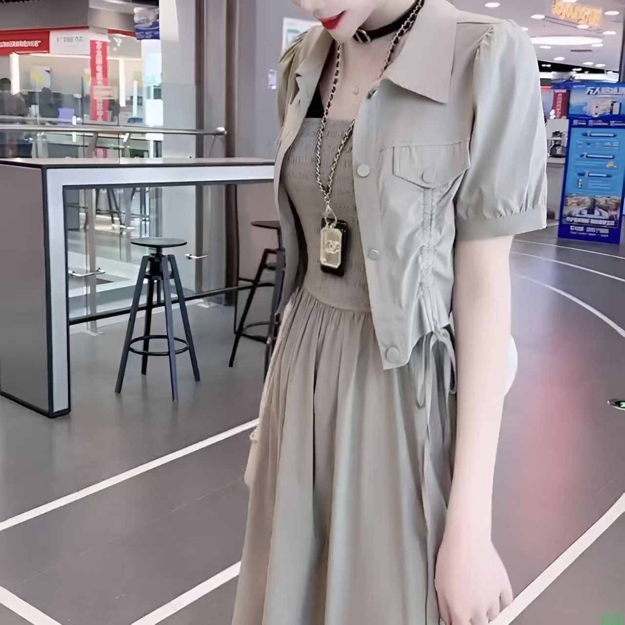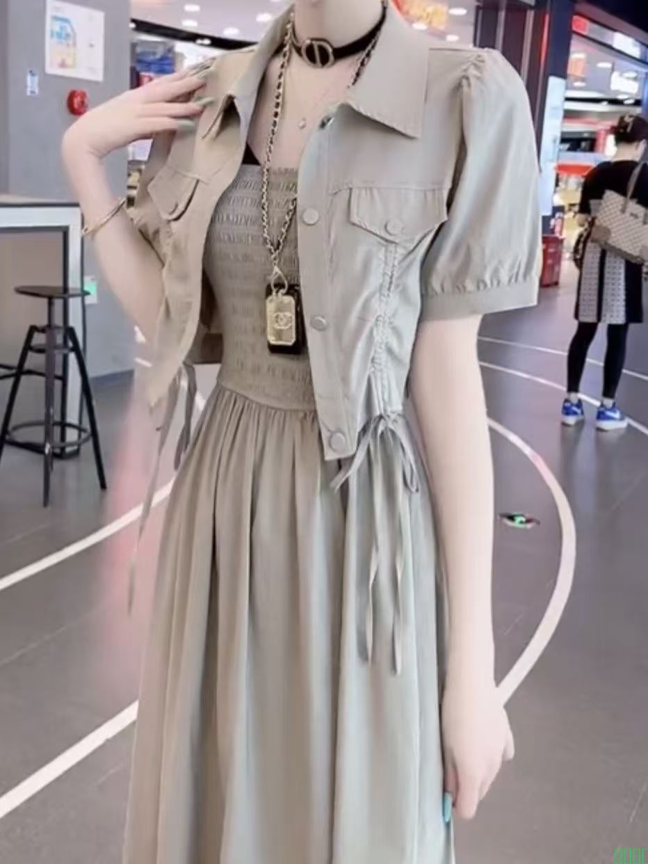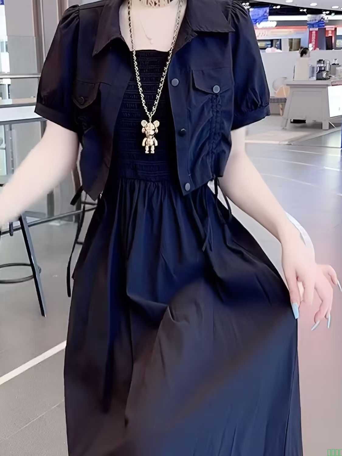 2025夏季新款时尚气质短袖外套+吊带连衣裙两件套小香风套装女潮