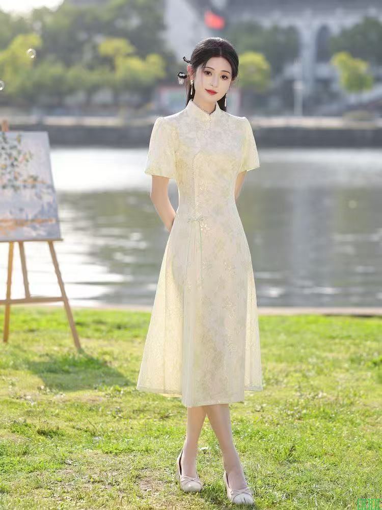奥黛旗袍2024新款夏季高端改良年轻款少女新中式日常可穿法式蕾丝