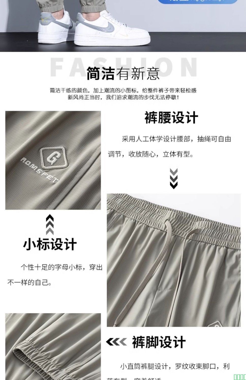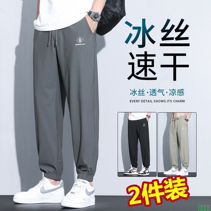 冰丝裤子男夏季薄款2025新款长裤速干运动束脚九分男士休闲裤夏天